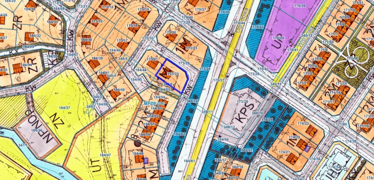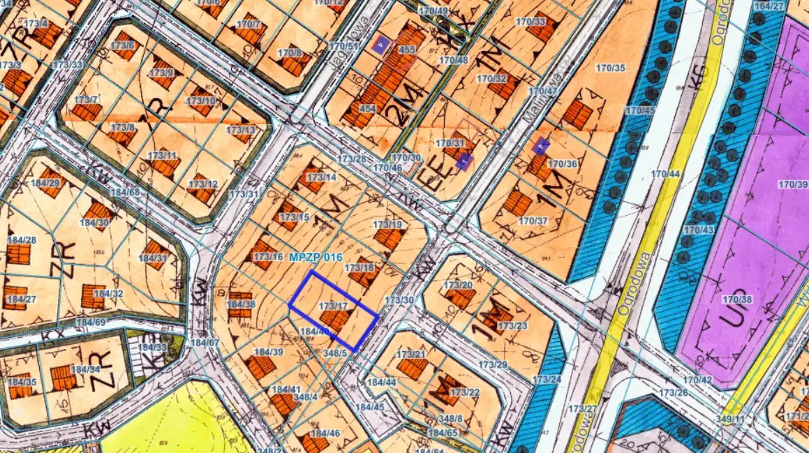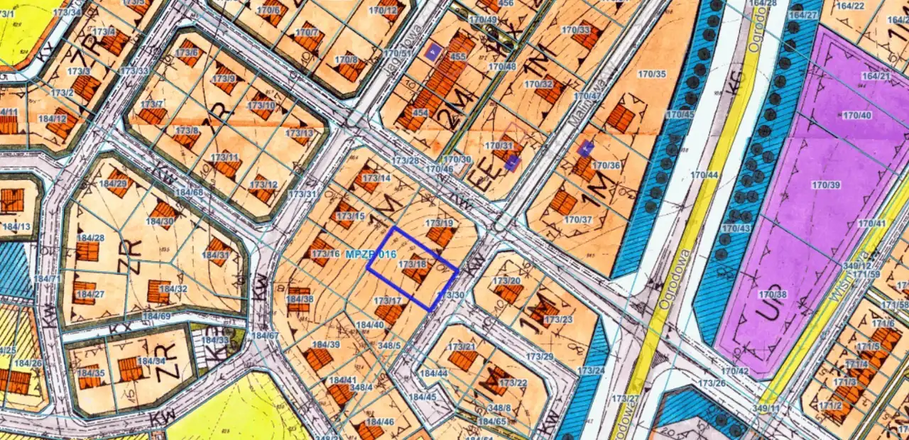 To teren objęty miejscowym planem zagospodarowania przestrzennego, oznaczony symbolem 1M, co oznacza możliwość realizacji zabudowy mieszkaniowej jednorodzinnej wolnostojącej.