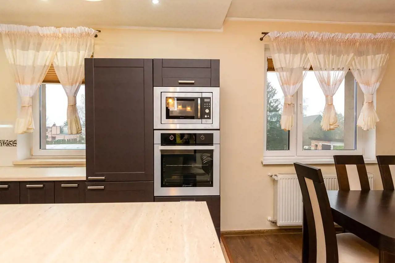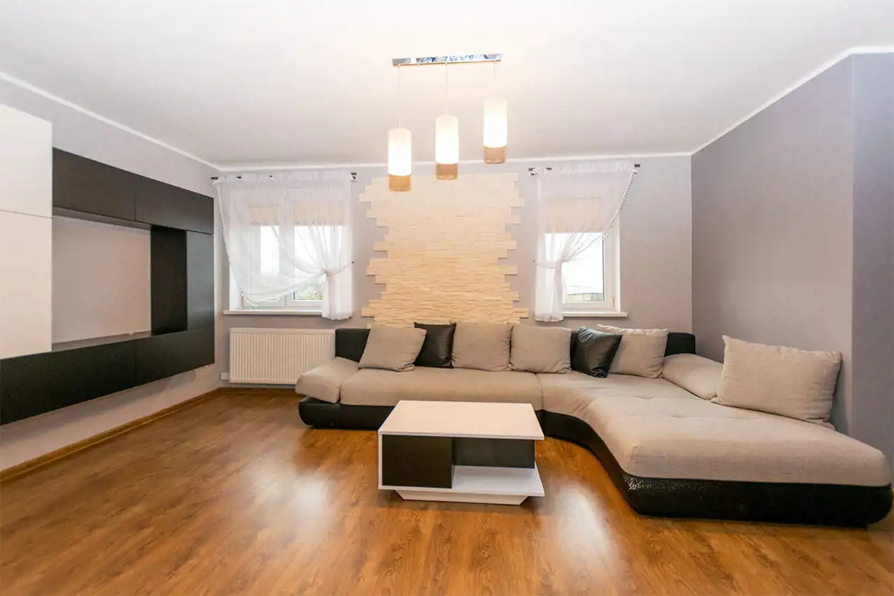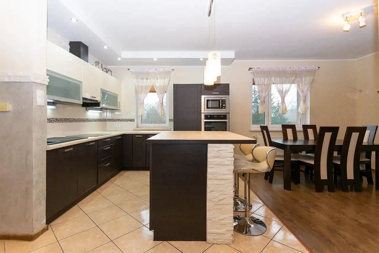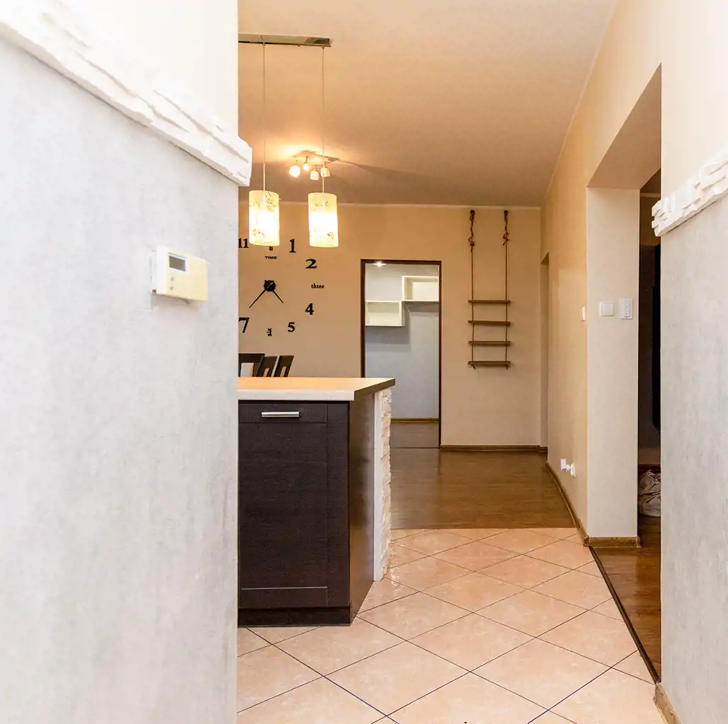 Mieszkanie jest umeblowane i gotowe do zamieszkania. Genialny układ. Przestronna kuchnia z wyspą połączona z jadalnią. Osobny salon, sypialnia i pokój, np. dla dziecka. Dodatkowo do użytku jest pomieszczenie techniczne (dawniej kotłownia). Szafy garderobiane, łóżko, narożnik, meble, kuchnia oraz sprzęty AGD na wyposażeniu.