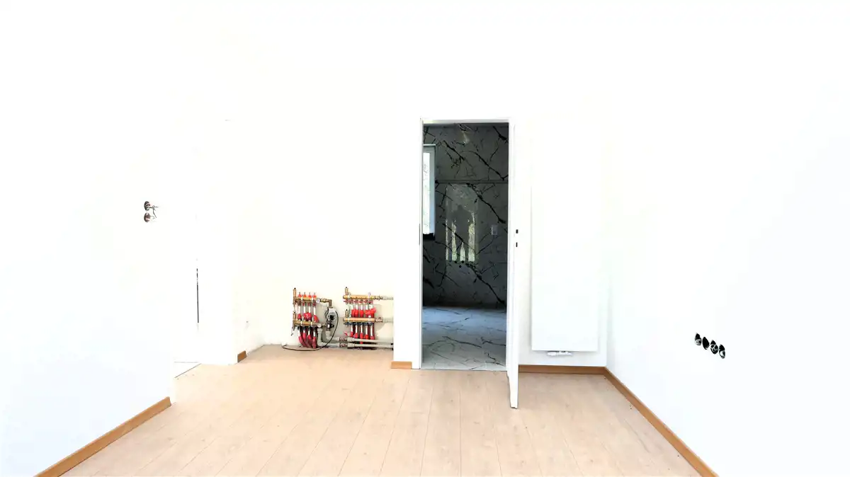 Ogrzewanie podłogowe w salonie i łazienkach, w sypialniach – grzejniki.