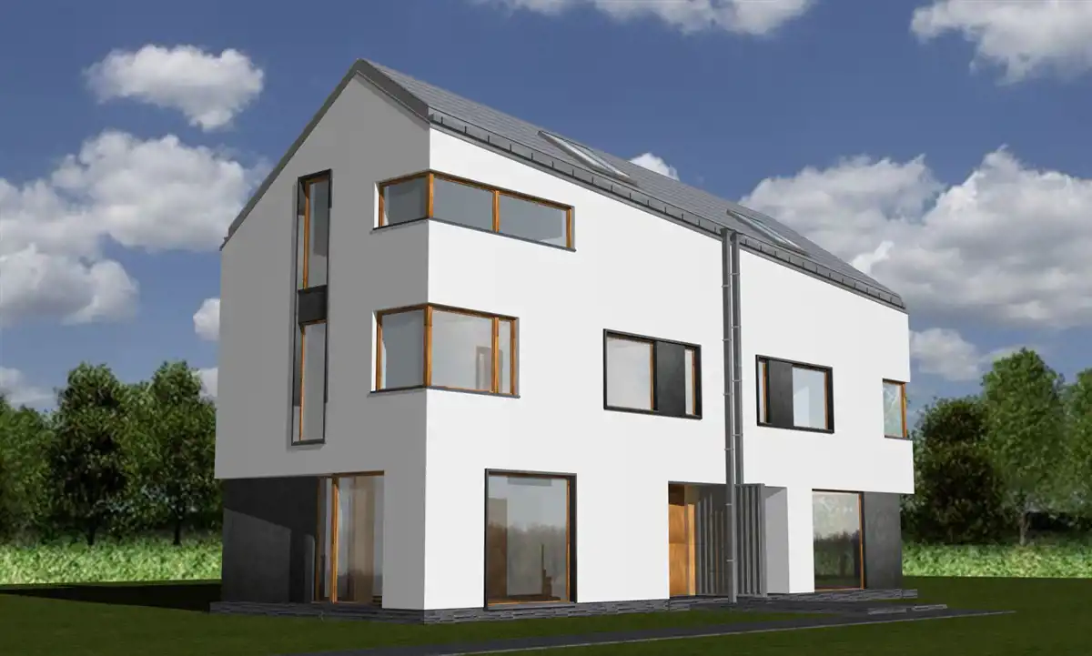Projekt domu wyróżnia się współczesną architekturą, której cechą charakterystyczną są: