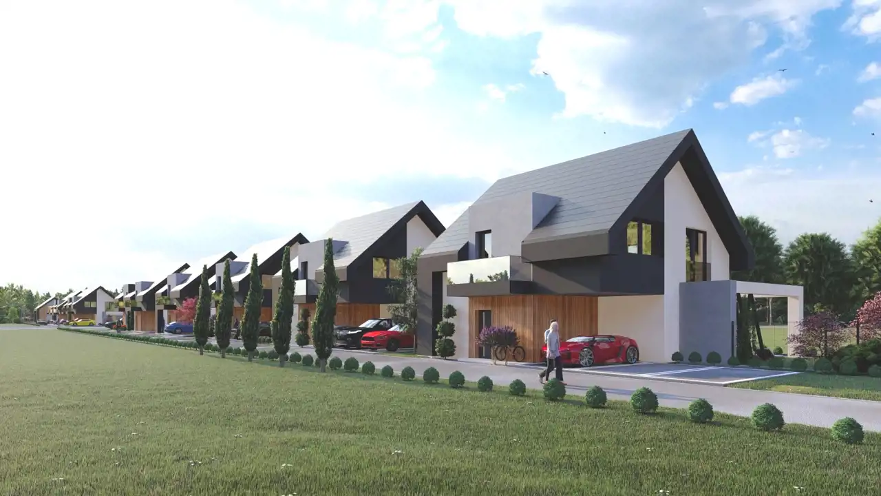 Budynek z balkonem, trzema miejscami postojowymi, tarasem wraz z pergolą, wpisujący się w najnowsze trendy budownictwa. Dojazd drogą publiczną asfaltową, następnie drogą prywatną.