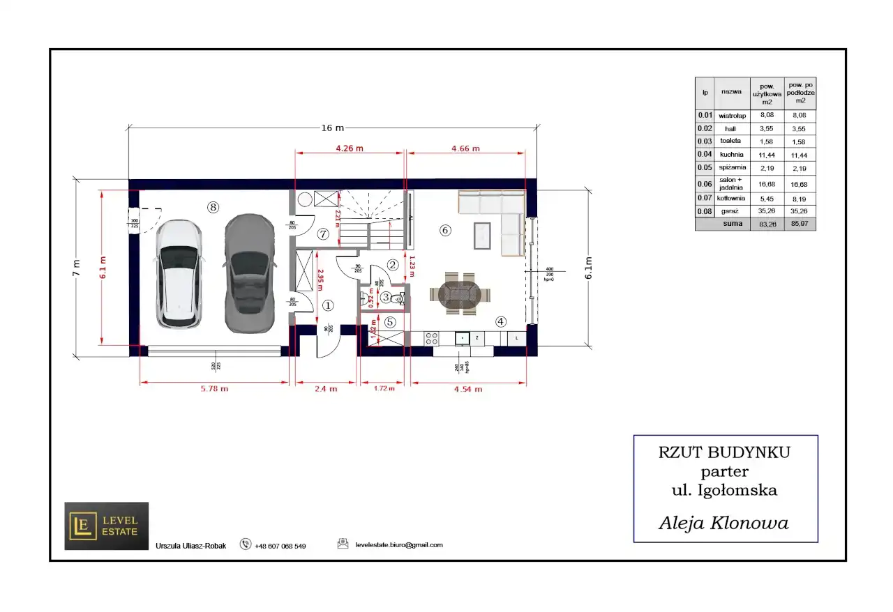 - garaż 2 stanowiskowy 35,26 m2