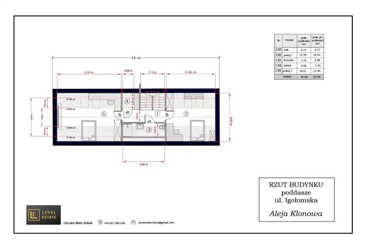 - strych o powierzchni mierzonej po podłodze 82m2, wysoki, ocieplony z oknami