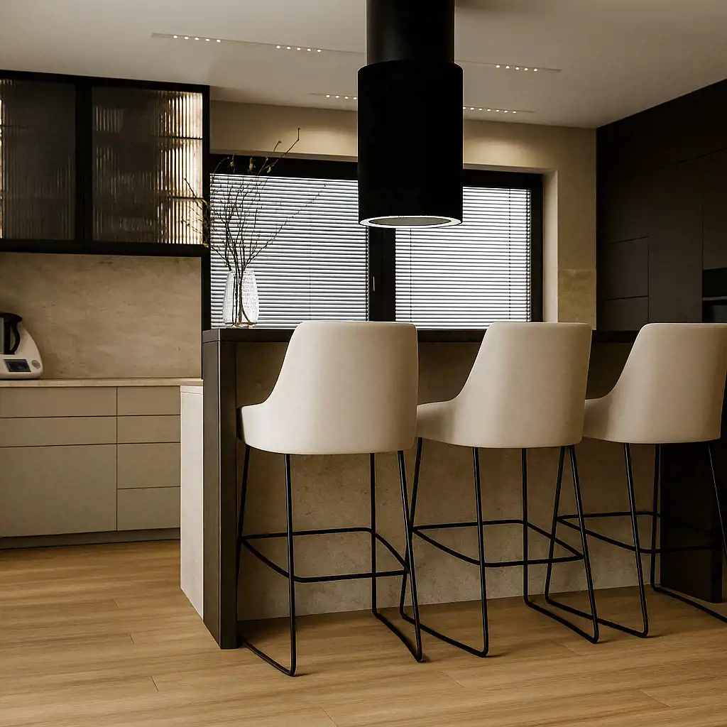 Nieruchomość zaprojektowana została z myślą o wysokim komforcie codziennego życia i świadomego wykorzystania z przestrzeni domu.