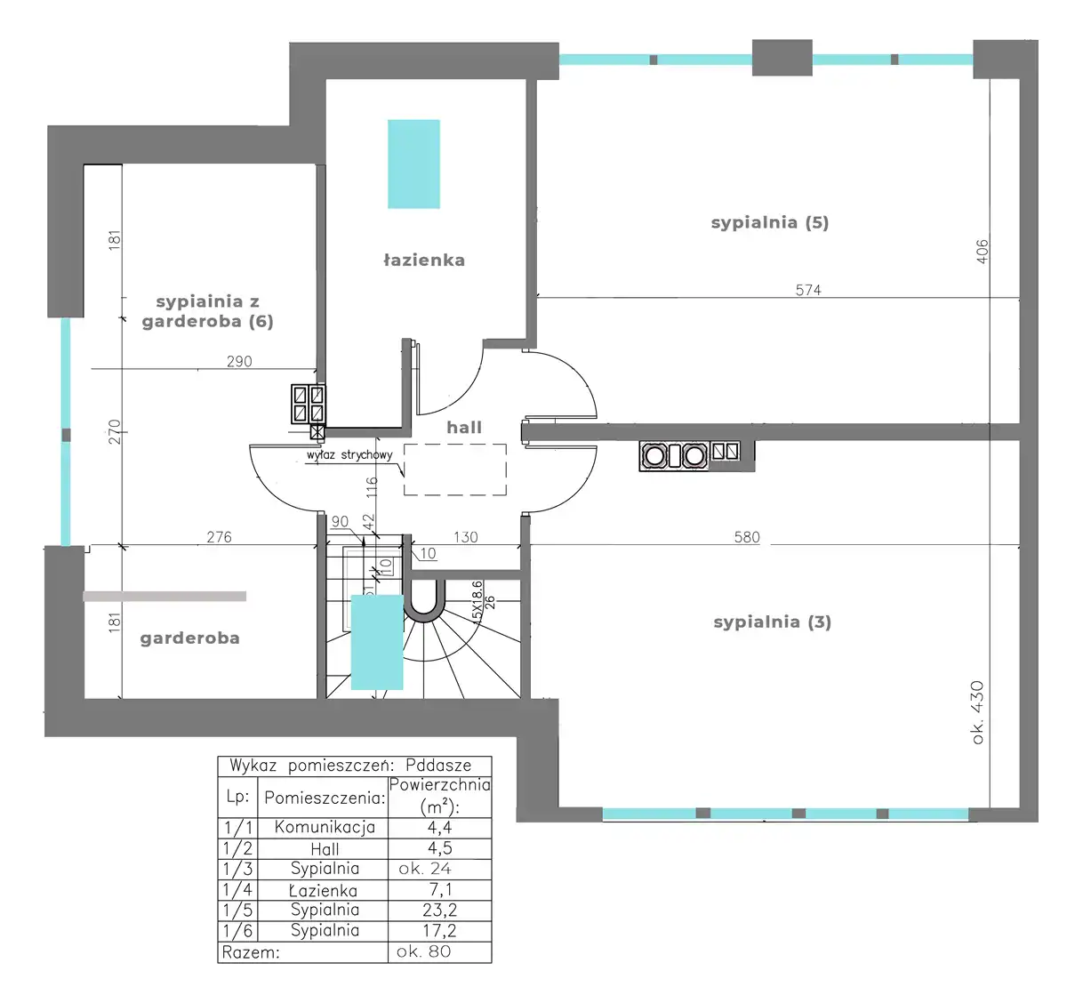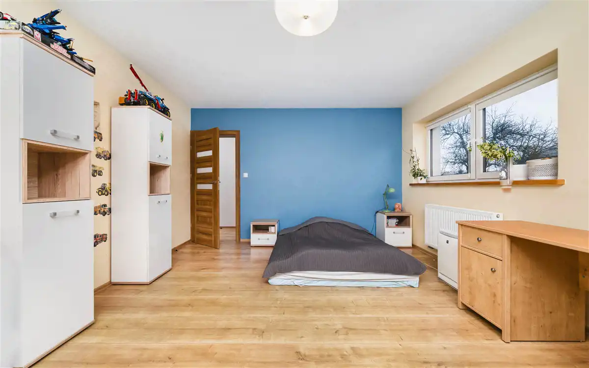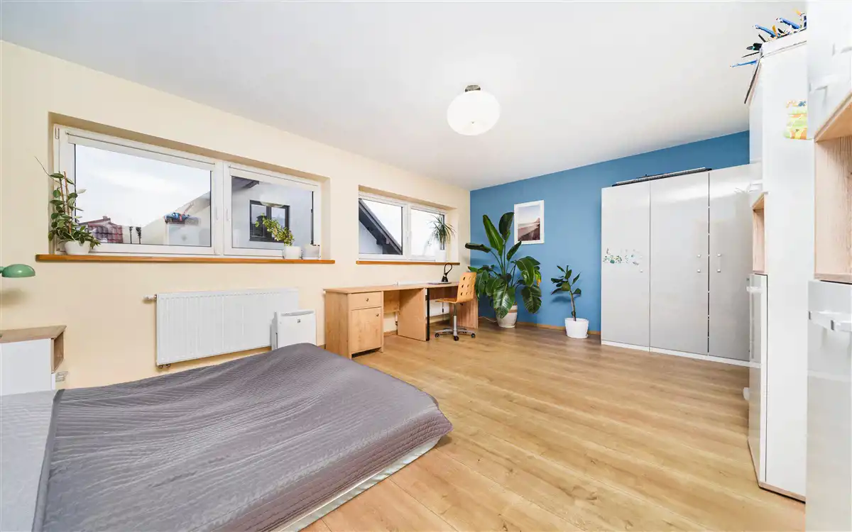 - 3 osobne pokoje + jeden pokój ma garderobę ( ok. 23,2 m2, 17,2 m2, 24 m2)