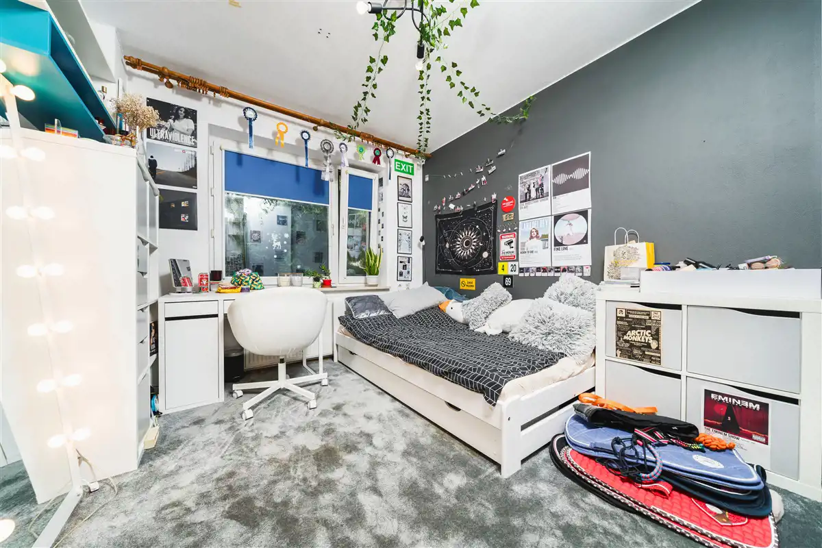 - 4 niezależne, przestronne pokoje (ok, 21 m2, 21 m2, 11 m2, 9 m2), z dwóch dostęp do dużego balkonu