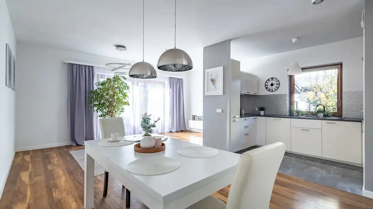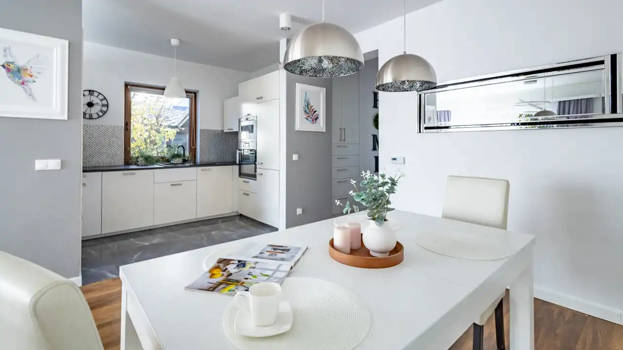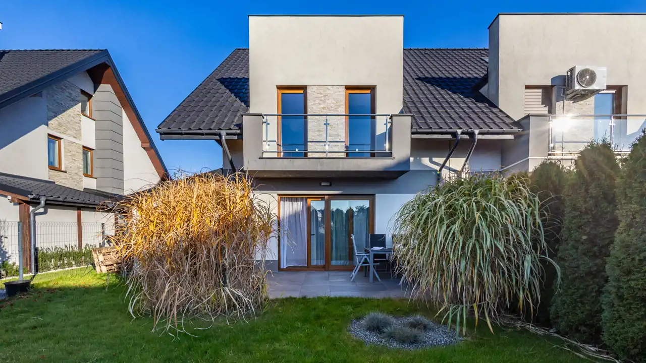 Wnętrze jest wygodne, nowoczesne i funkcjonalne. Dom ma ogrzewanie podłogowe na parterze, kaloryfery na piętrze, internet oraz elektryczne rolety okienne. Działka jest w pełni zagospodarowana z przemyślanymi nasadzeniami i oświetleniem. Duży, wybrukowany podjazd gwarantuje komfort przy parkowaniu. W cenie jest większość mebli i wyposażenia.