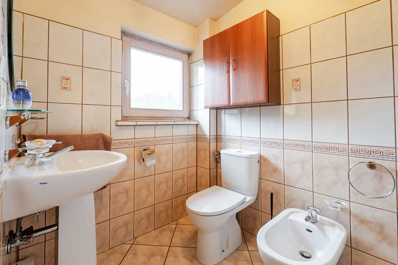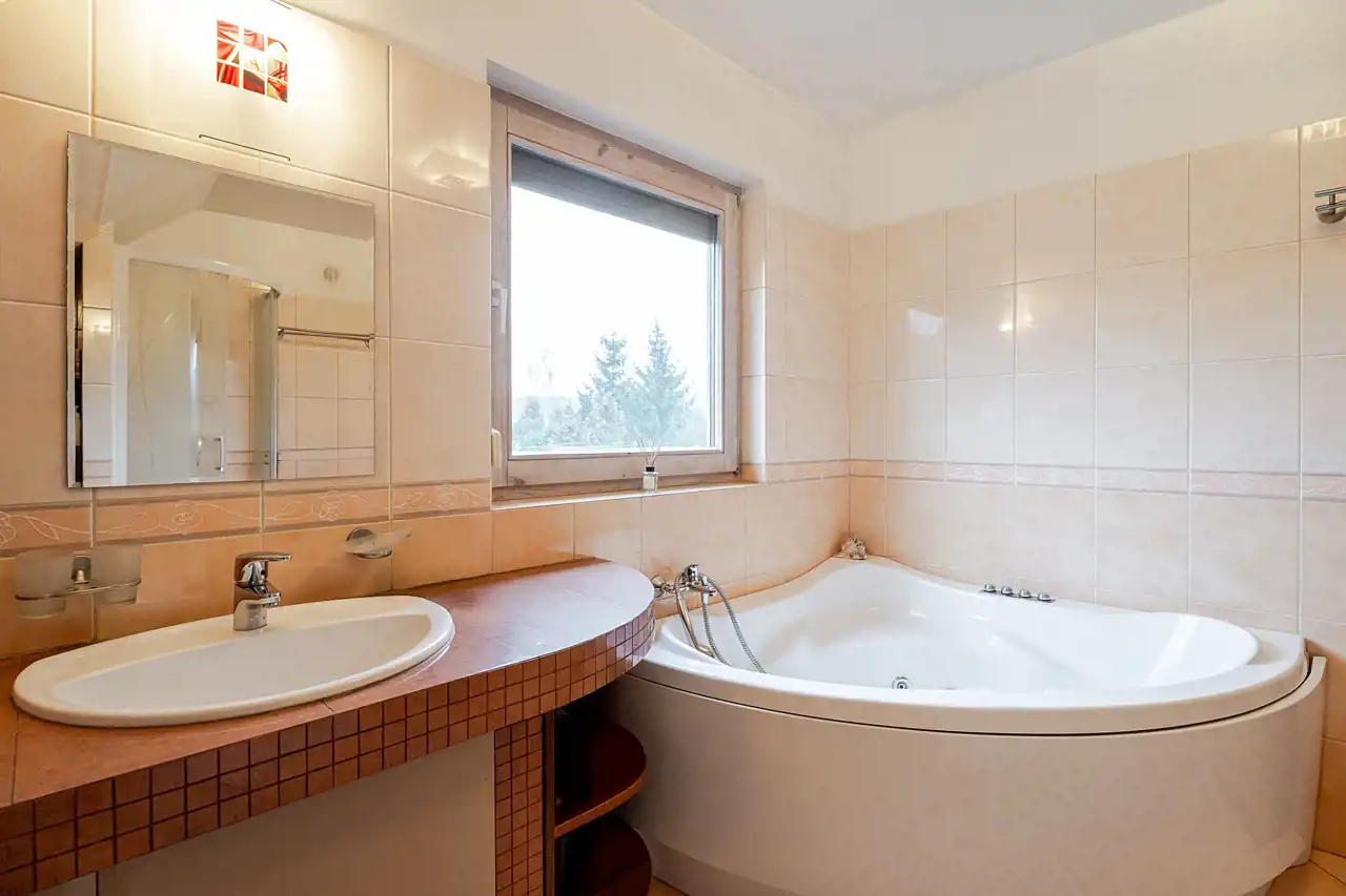 - podłogi: parkiet, w kuchni/łazienkach/WC płytki, w piwnicach również płytki;