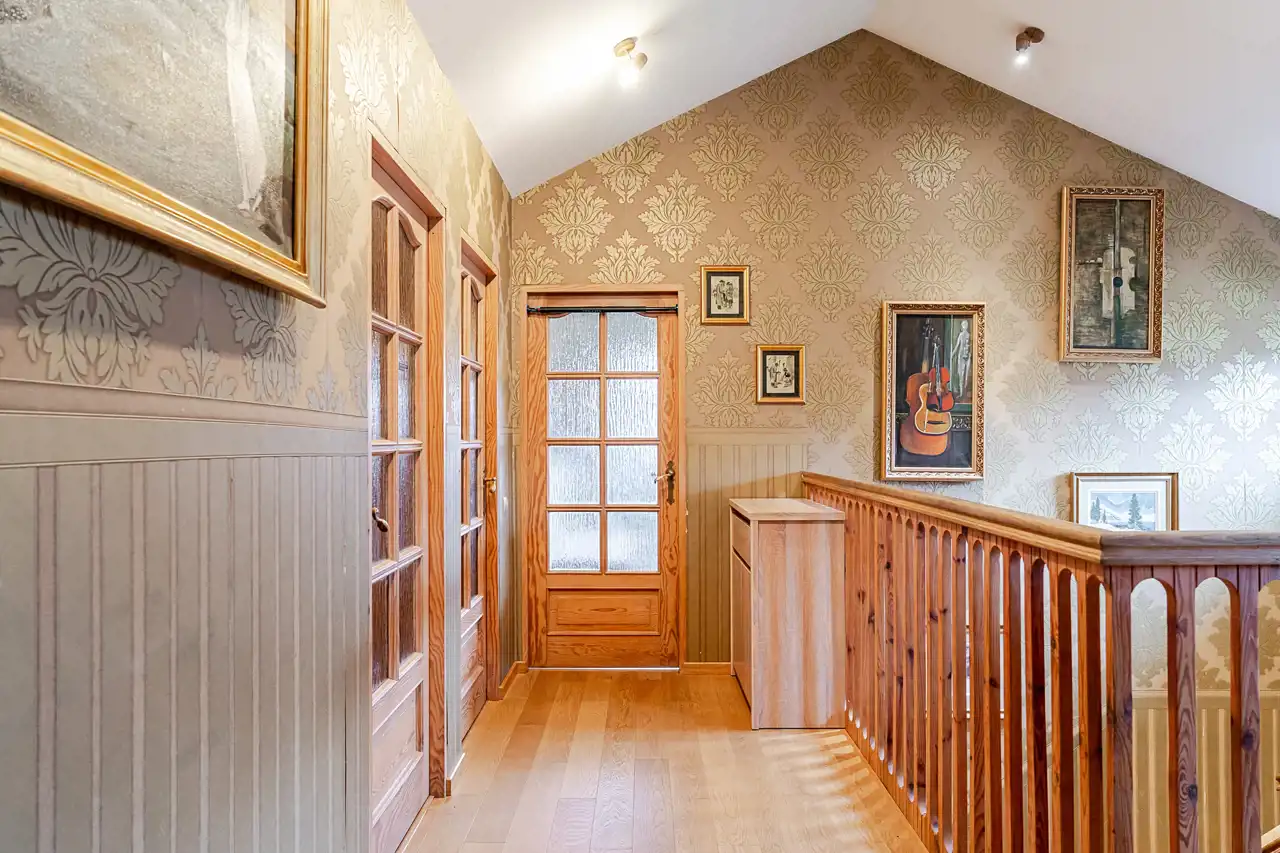 - parter: hol + schody, kuchnia, 2 pokoje, salon, WC, korytarz;