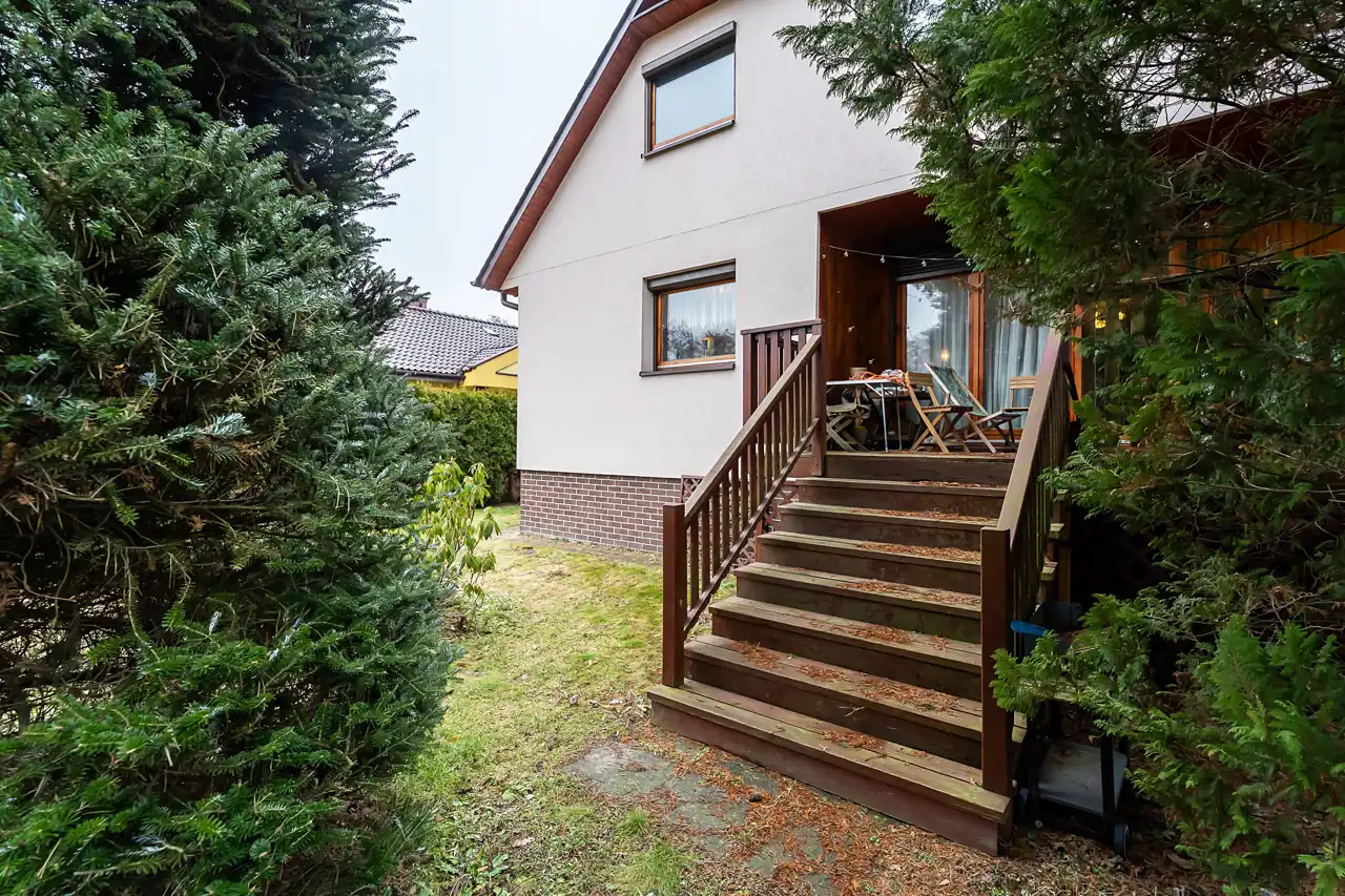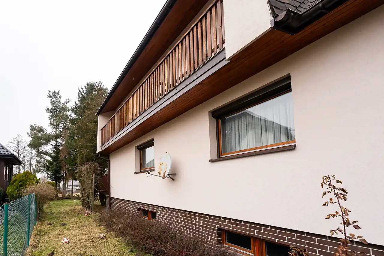 Dom zaprojektowano w technologii kanadyjskiej (szkielet drewniany) – rozwiązaniu cenionym za komfort użytkowania i szybkie dogrzewanie. Budynek jest podpiwniczony i posiada użytkowe poddasze, dzięki czemu strefa dzienna i prywatna są naturalnie rozdzielone.