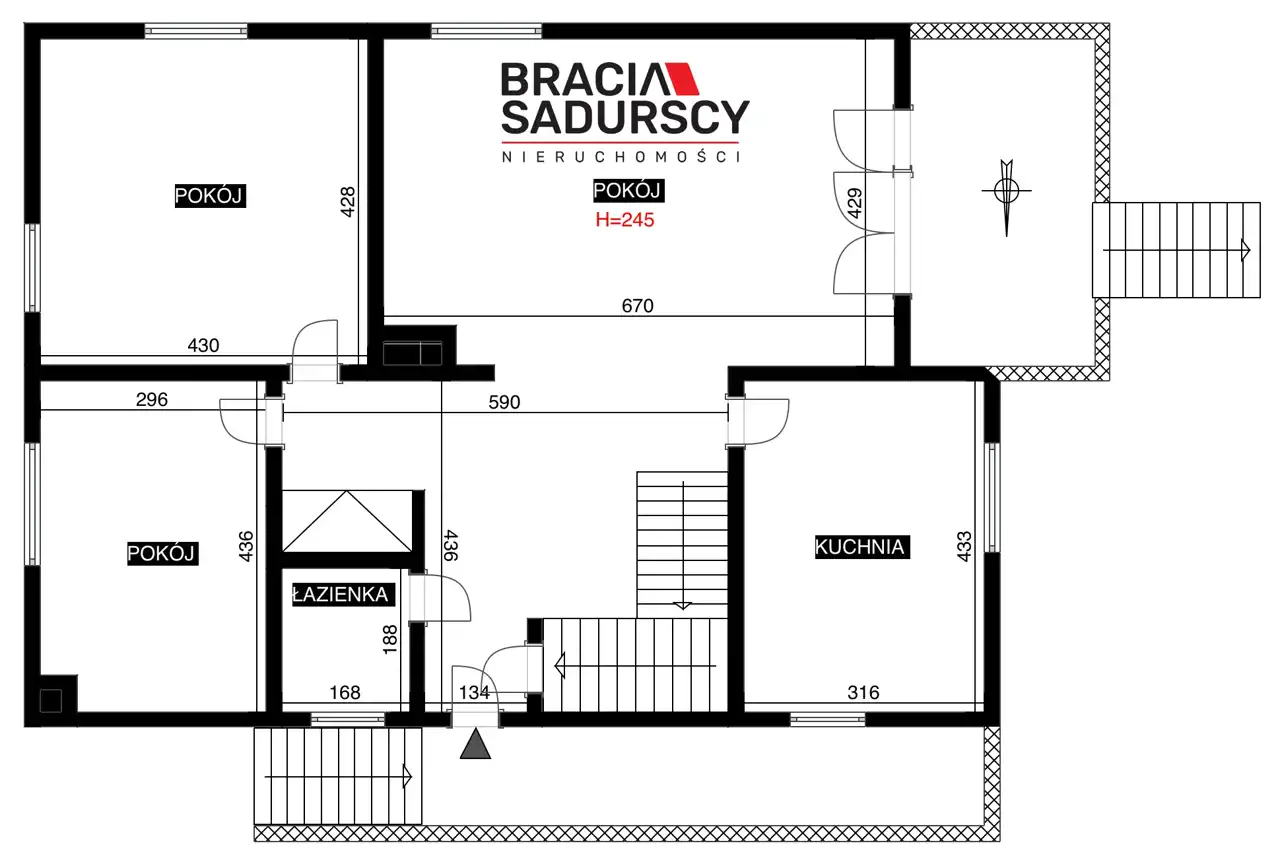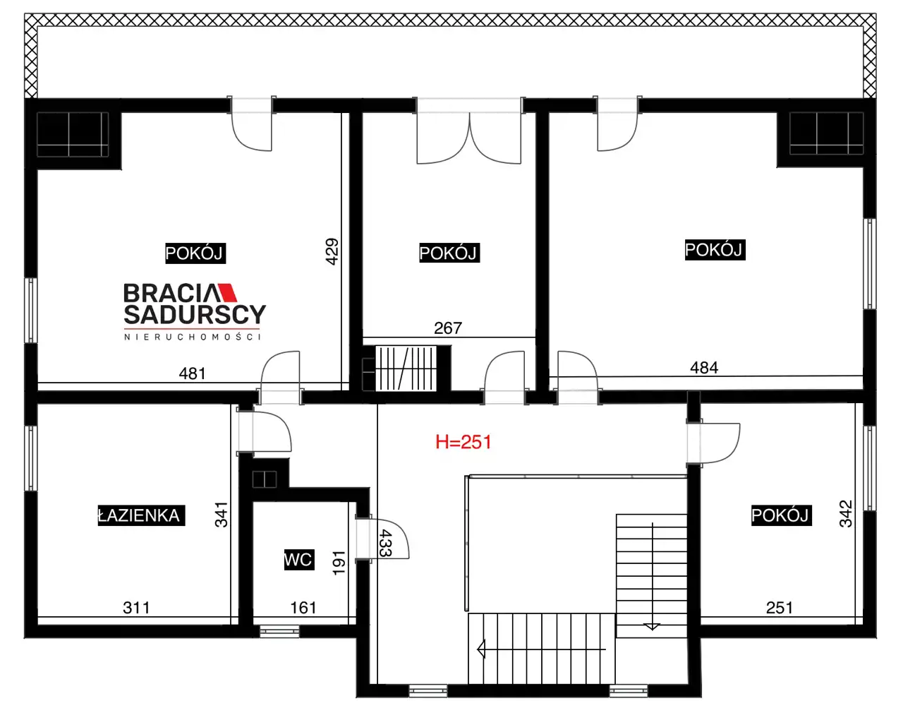 - poddasze: 4 sypialnie, łazienka, WC, korytarz.