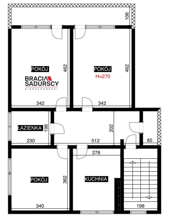 - Trzy niezależne pokoje o pow. - 2 po 16 m2 oraz 12,3 m2.