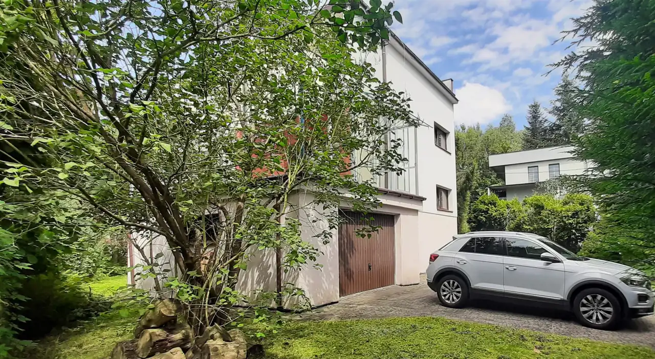 Dom usytuowany na działce o powierzchni 5 ar, znajdującej się na końcu bocznej, ślepej uliczki, w otoczeniu dużej ilości zieleni, co zapewnia poczucie ciszy i spokoju.
