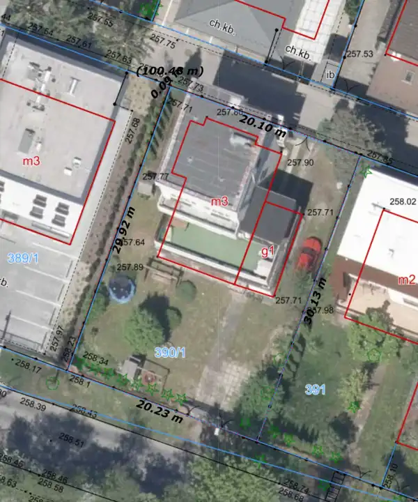 - Działka częściowo zagospodarowana, płaska, prostokąt