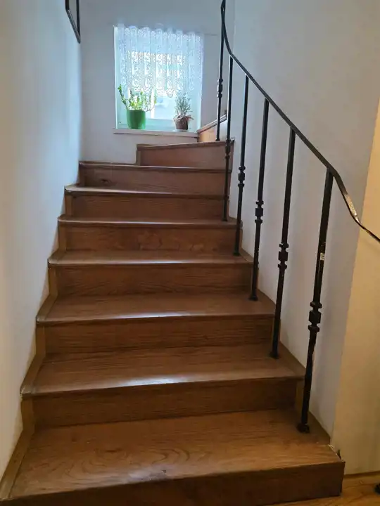 - 2 duże pokoje ( przechodnie ) pełniące funkcje pok. dziennego ( kominek) i dużej jadalni , łazienka , pom. gospodarcze z piecykiem gazowym na CO i ciepłą wodą-bojler , małą spiżarką pod schodami , 2 przedpokojami, całość o pow. ok. 92 m2