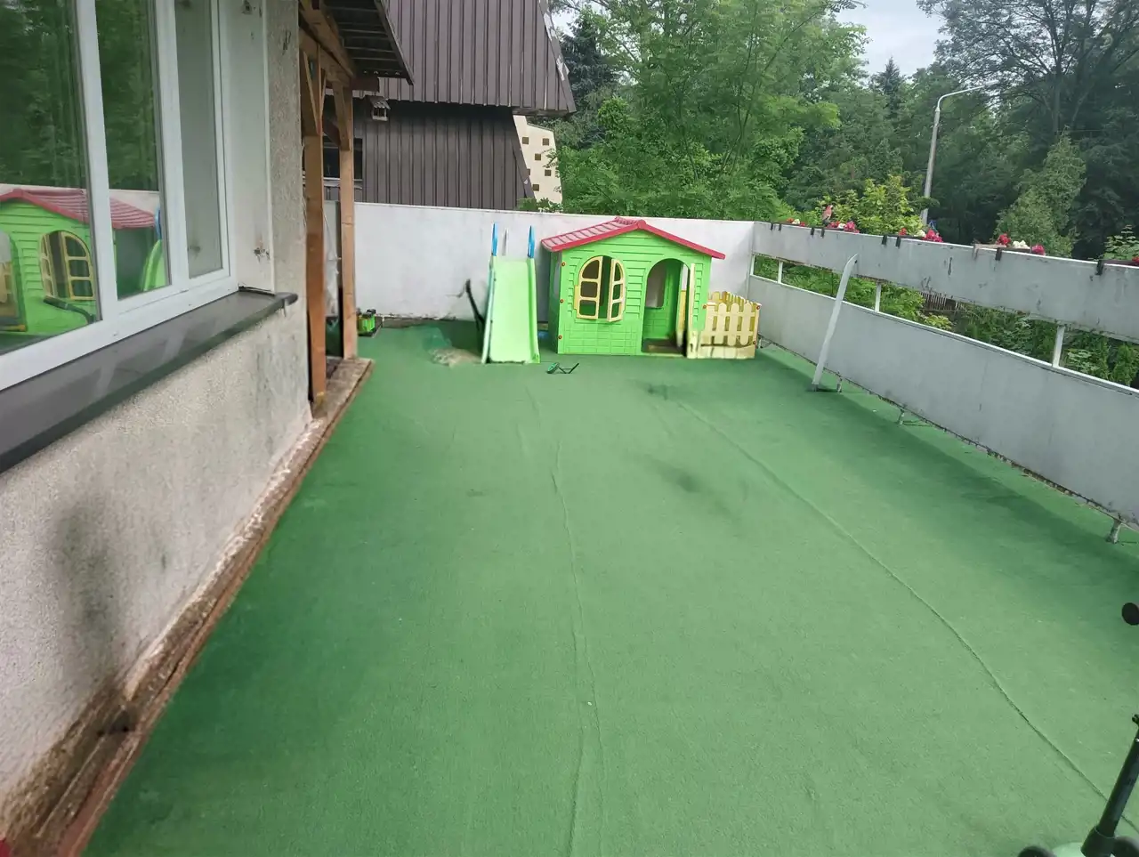 - salon z wyjściem na ok 70 metrowy taras( część tarasu o pow. ok. 18 m2 jest zadaszona ) , 2 sypialnie , kuchnia ze spiżarką, łazienka ,