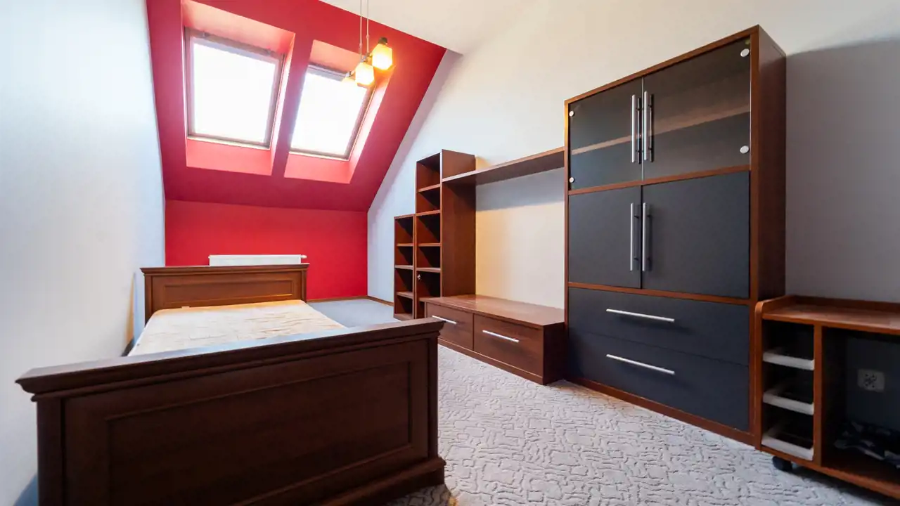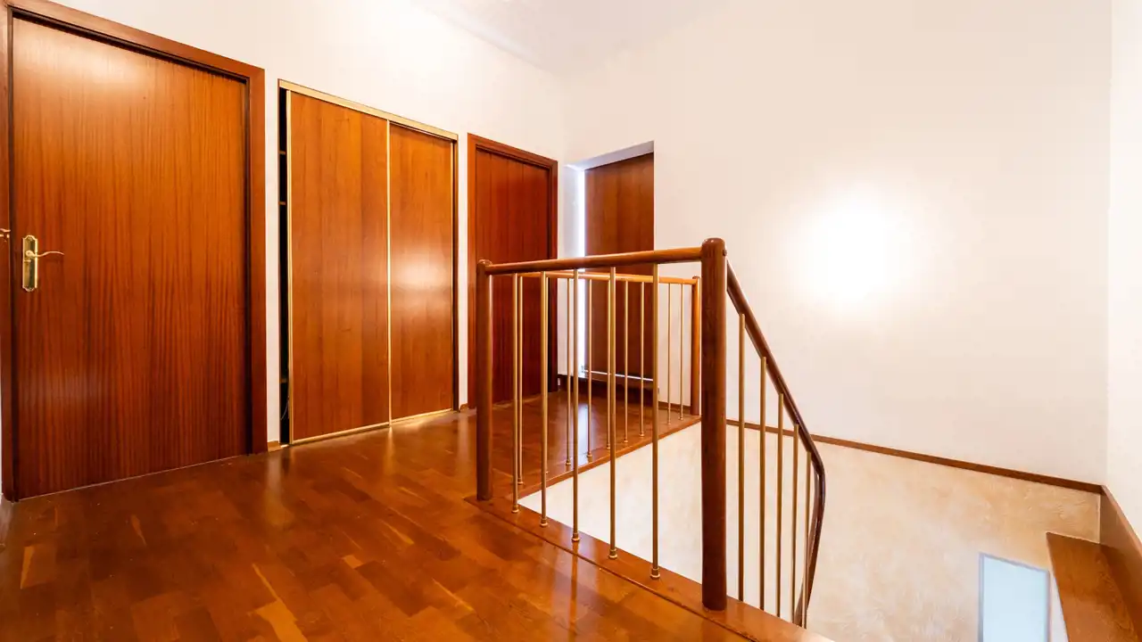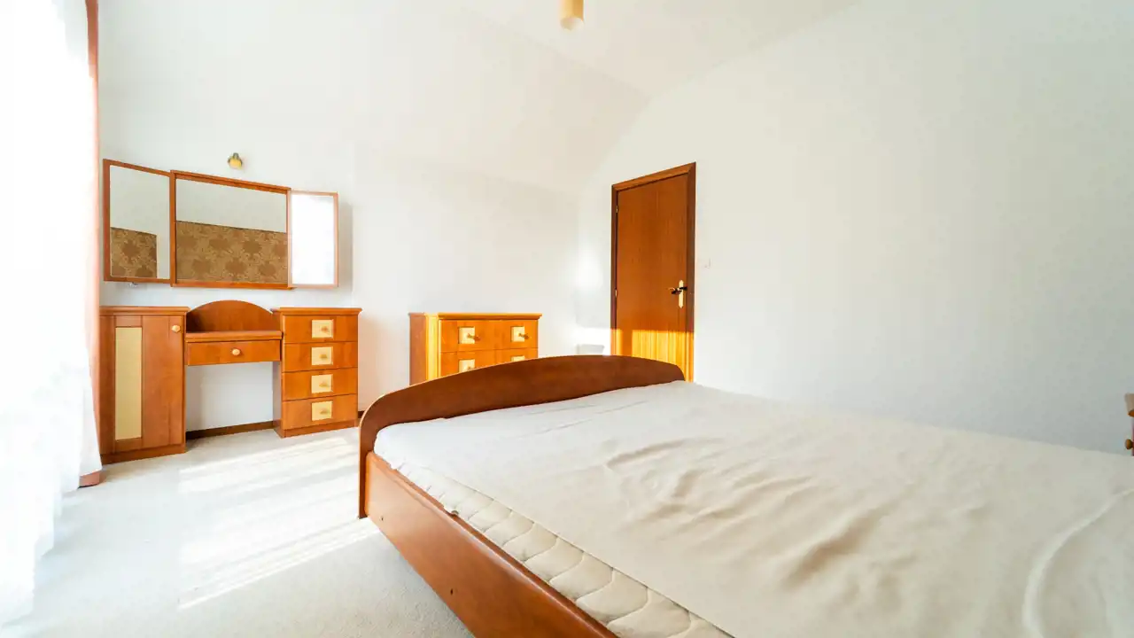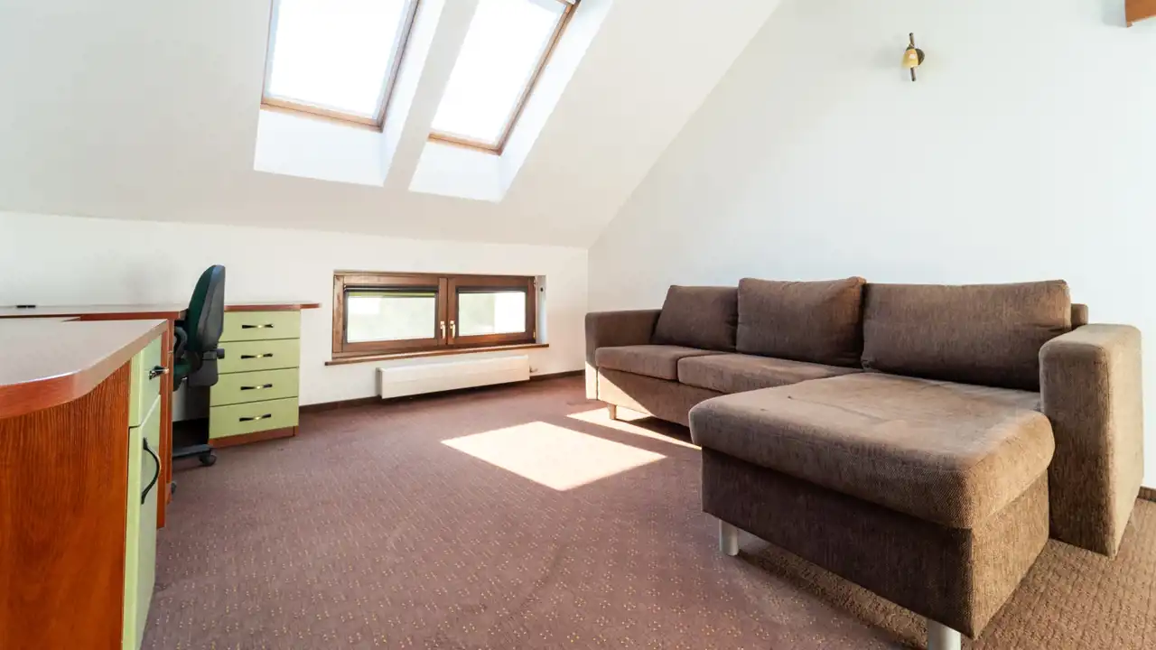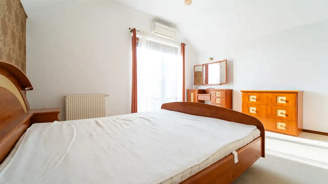 Działka na 3,32 ar więc jest idealna dla osób, które chcą cieszyć się ogródkiem, lecz nie chcą poświęcać dużo czasu na jego pielęgnację. Ogród jest od strony południowej, tak jak balkon jednego z górnych pokoi. Dom jest w bardzo dobrym stanie, ma metraż 208,29 m2. Na poziomie pierwszym znajduje się hol z bardzo dużą szafą, toaleta, kuchnia, przejściowa jadalnia i salon. Na drugim poziomie: cztery pokoje, łazienka z toaletą, hol i wyjście na poddasze. Poddasze jest ocieplone, ze skosami mierzy 70m2, do wysokości 220cm - ok.50 m2. Powierzchnia poddasza nie jest wliczona w podane 208,29 m2.