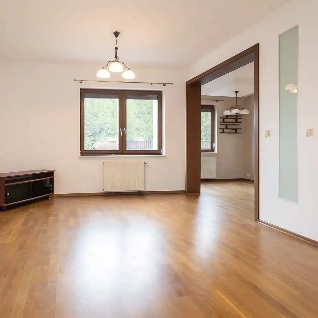 Na podłogach leży deska Barlinecka, okna są nowe - drewniane.