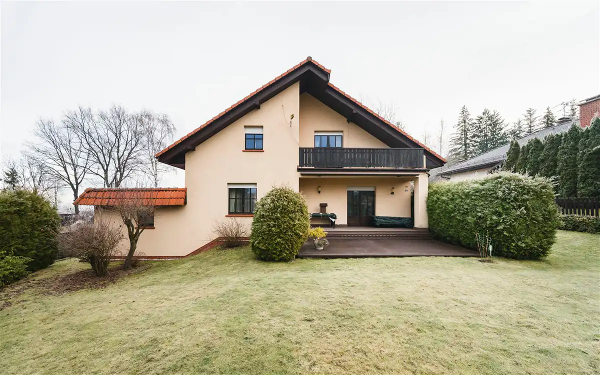Dom położony w malowniczej i cichej okolicy, z dużą ilością zieleni, zbudowany z pustaków ceramicznych ( pustak + ocieplenie na zewnątrz 10 cm styropian+ tynk akrylowy), kryty dachówką ceramiczną, instalacja alarmowa w całym domu oraz zewnętrzne rolety antywłamaniowe.