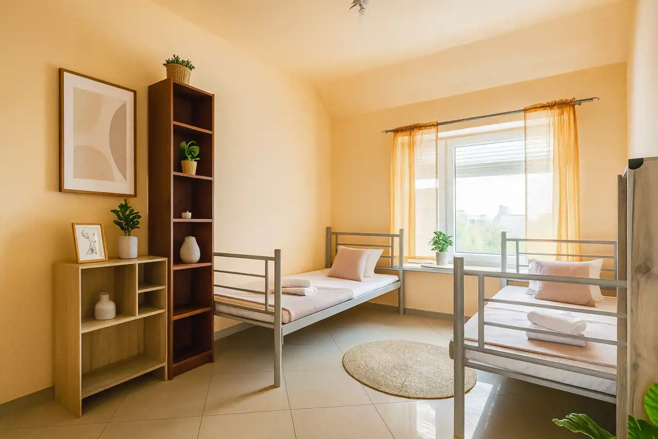 - Dwa niezależne pokoje o pow. 19,5 m2 . Ekspozycja na płd.