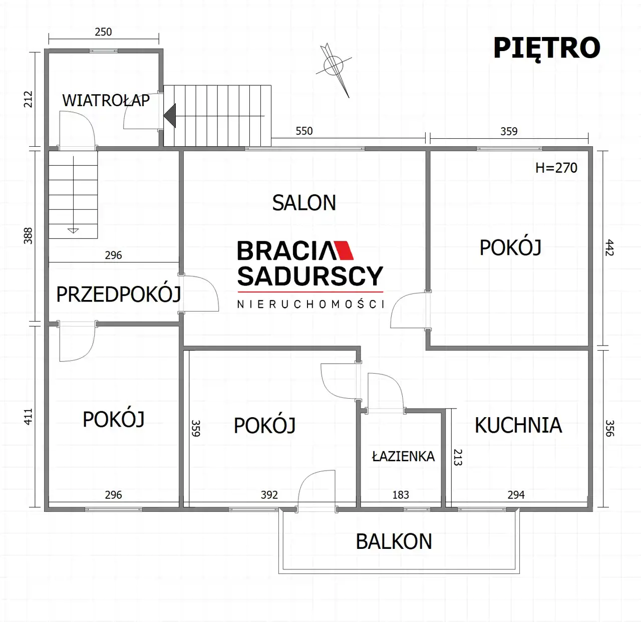 Wysokość pomieszczeń wynosi 2,7 m.