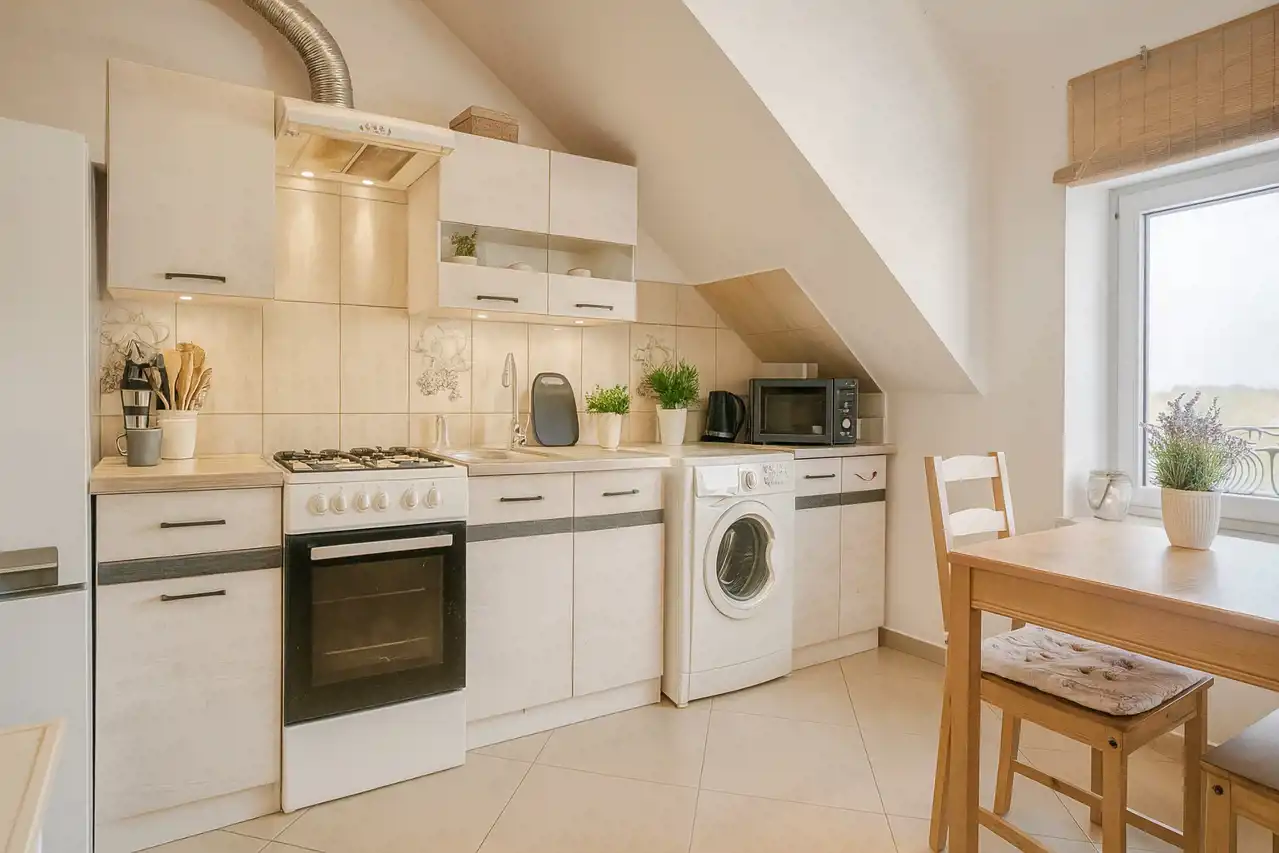 - Oddzielna kuchnia o pow. 10,5 m2 .Ekspozycja na zachód.