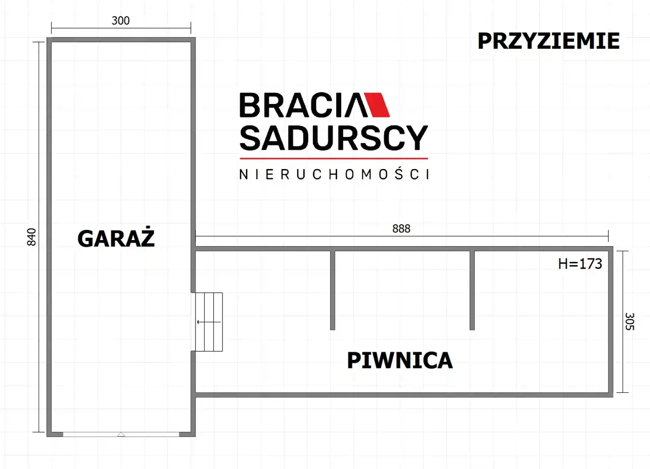 - Piwnica o pow. 28 m2, wysokość - 173 cm.
