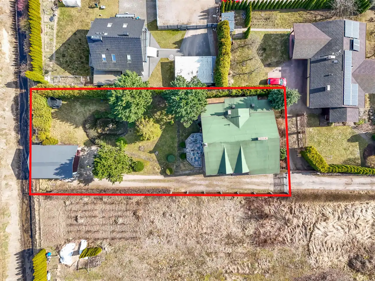 - Bezpieczeństwo ogrodzenie działki: ogrodzona