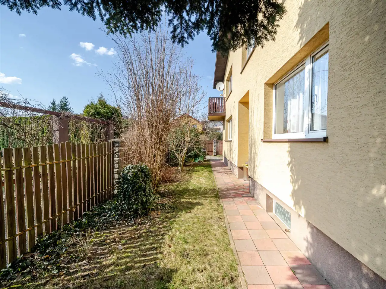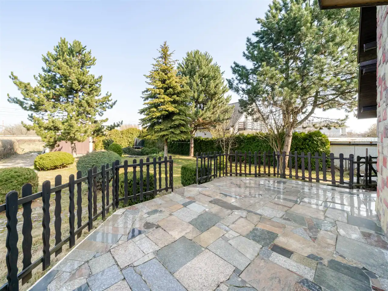 Działka w pełni ogrodzona, brama na pilota a podjazd utwardzony kamieniem.