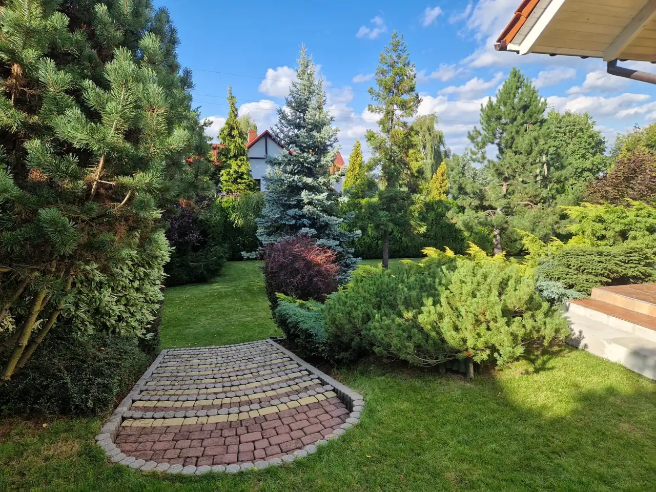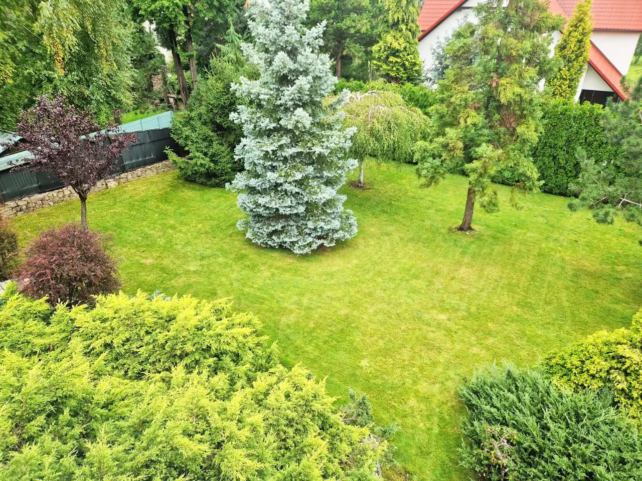 - Działka Zagospodarowana, lekko nachylona, prostokąt