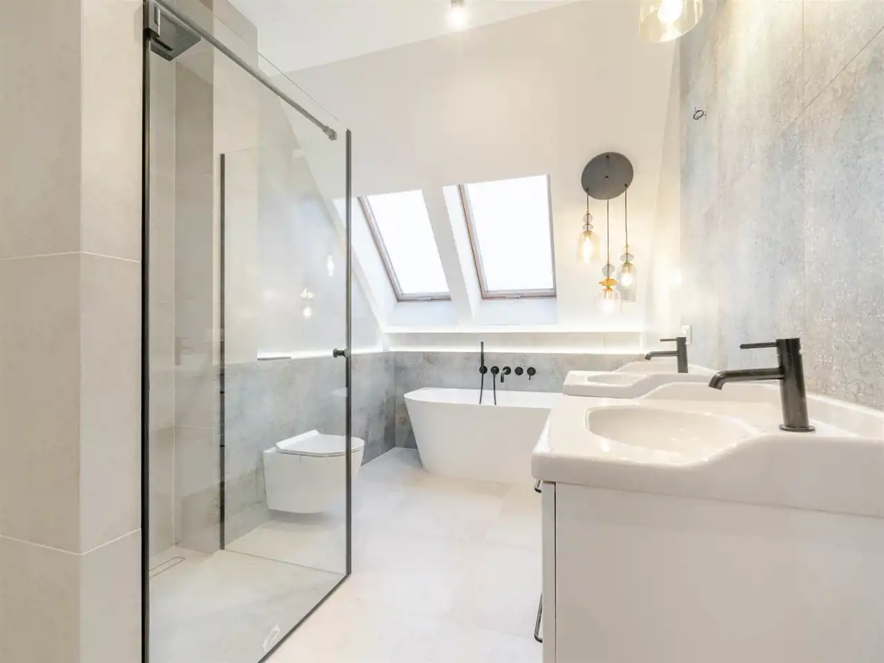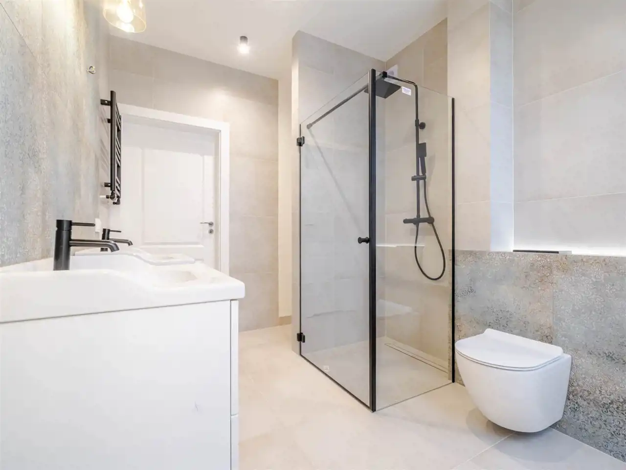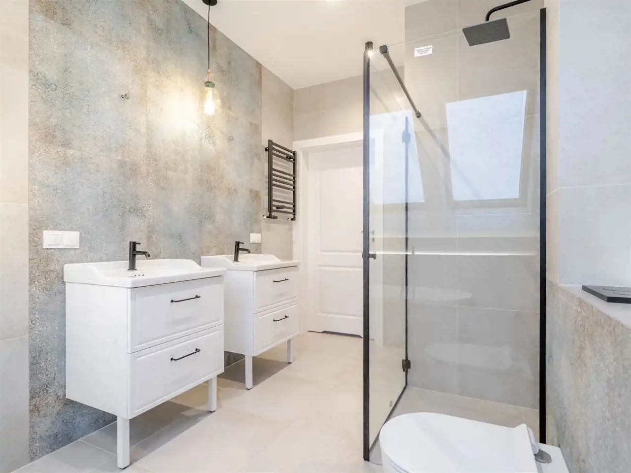 Ogrzewanie i ciepła woda z pieca gazowego. Na parterze ogrzewanie podłogowe wykonane w 2025 r., na poziomie poddasza - kaloryfery. Woda z sieci miejskiej, kanalizacja miejska. Na poziomie parteru - klimatyzacja.