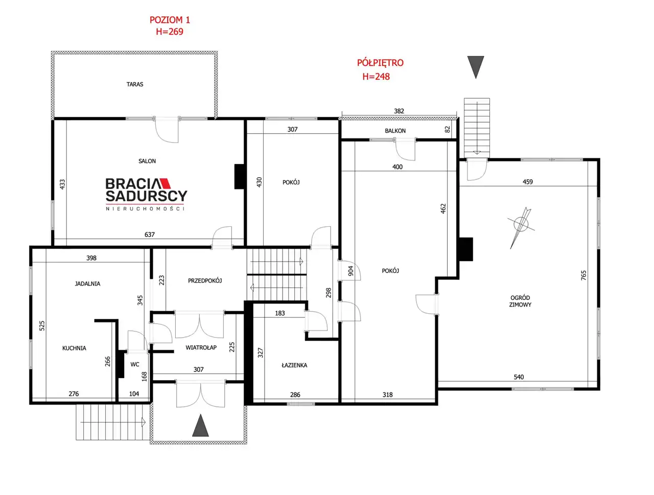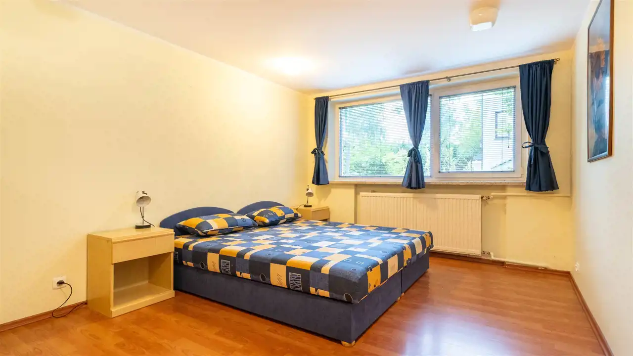 Poziom 2: przestronna sypialnia, duży pokój dzienny, łazienka, ogród zimowy