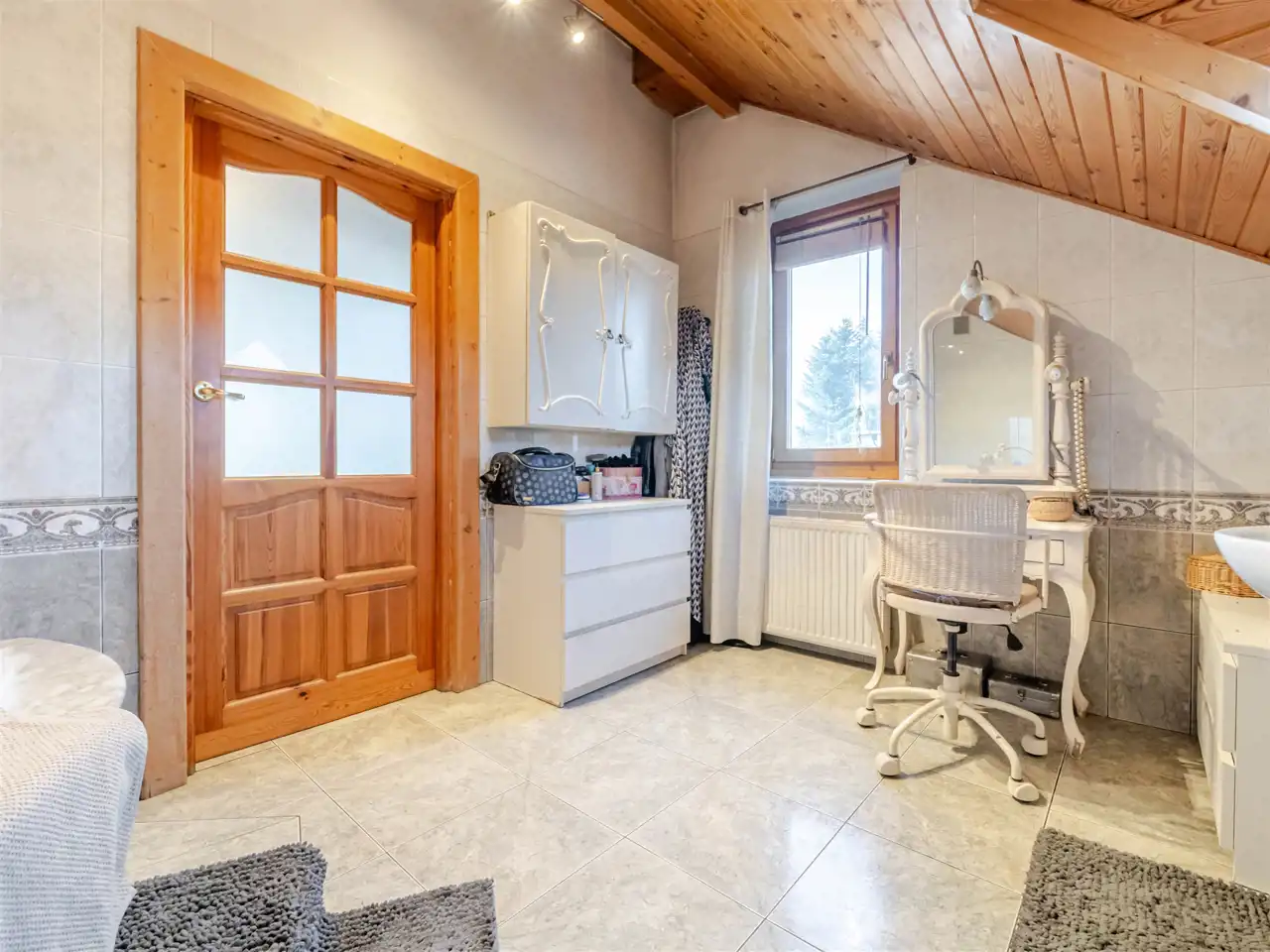 Przestronne poddasze posiada prywatną łazienkę z oknem a wysokość kondygnacji poddasza waha się od 1,5 m do 4,30 m w najwyższym punkcie.