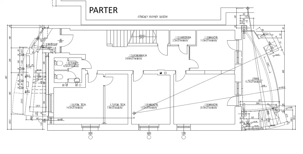 - 4-kondygnacyjny budynek mieszkalno-użytkowy o łącznej powierzchni netto około 425 m²