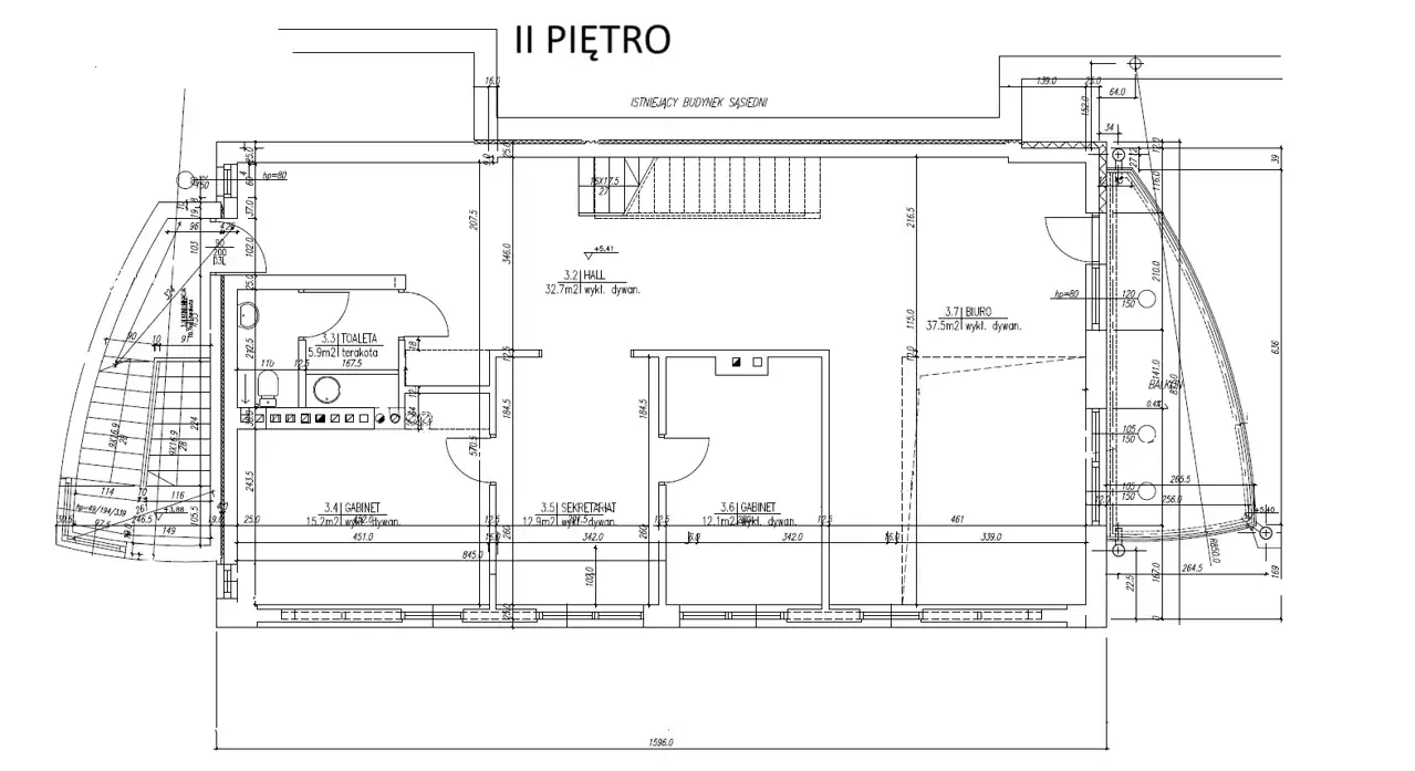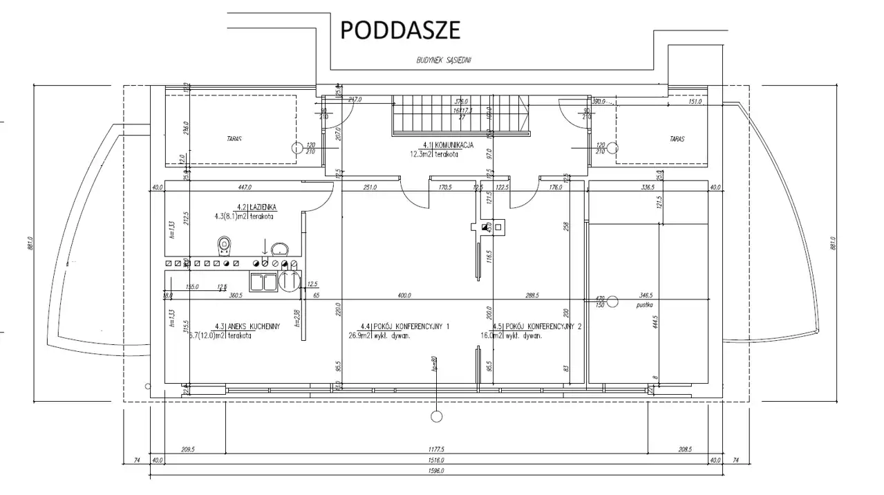 - Kilkanaście pokoi na 4 kondygnacjach naziemnych, pomieszczenia sanitarne na każdym piętrze