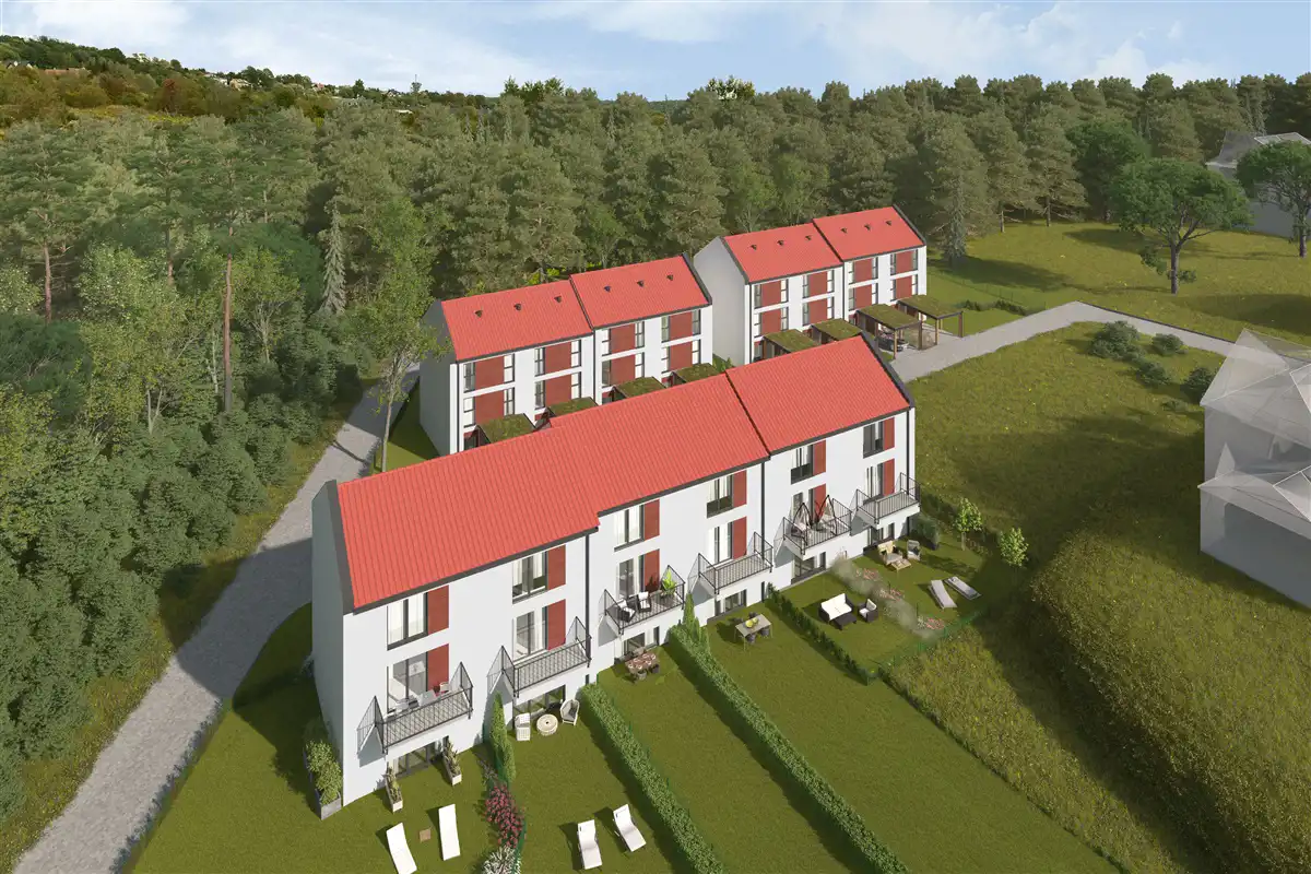 Obecnie do sprzedaży są zarówno apartamenty położone skrajnie, jak i w środku szeregu budynków, możliwość wyboru apartamentu (w zależności od położenia różnią się one wielkością ogródka i ceną).