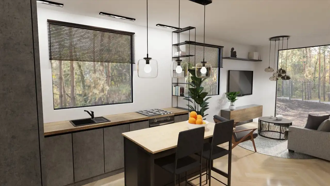 Aneks kuchenny + salon + jadalnia 24,33m2