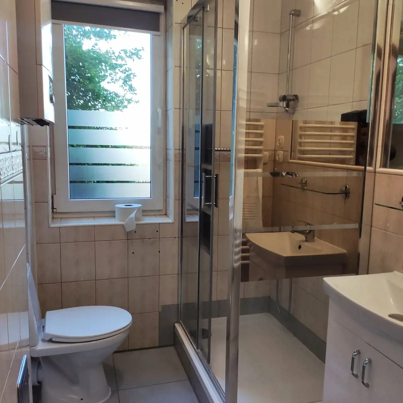 - łazienka z kabiną prysznicową