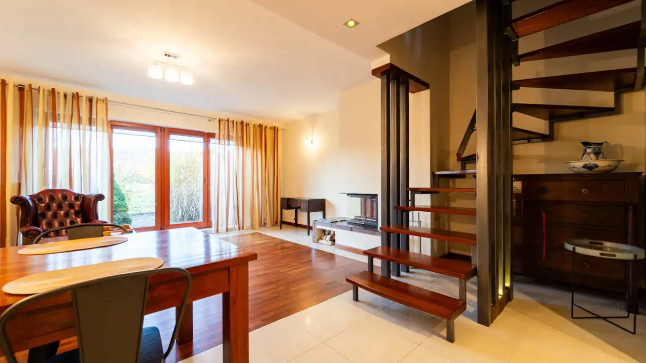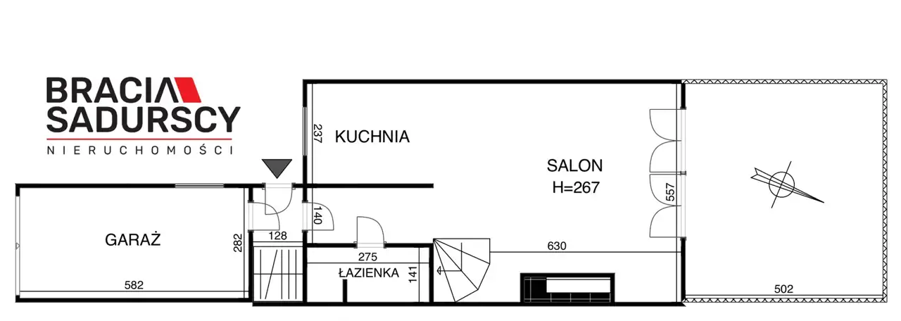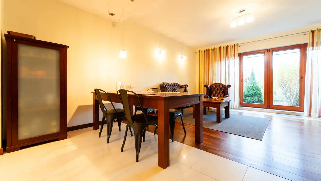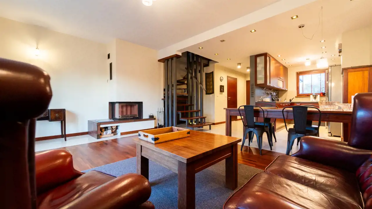 - Przestrzenny salon z aneksem kuchennym i wyjściem do ogrodu,