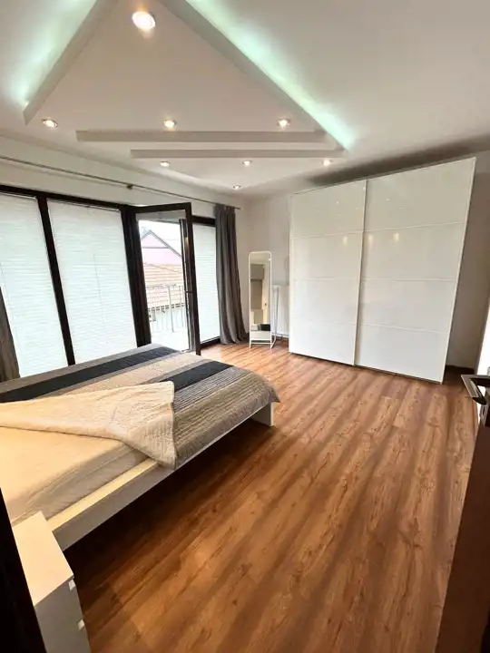 — головна спальня з двоспальним ліжком, гардеробною та виходом на балкон,