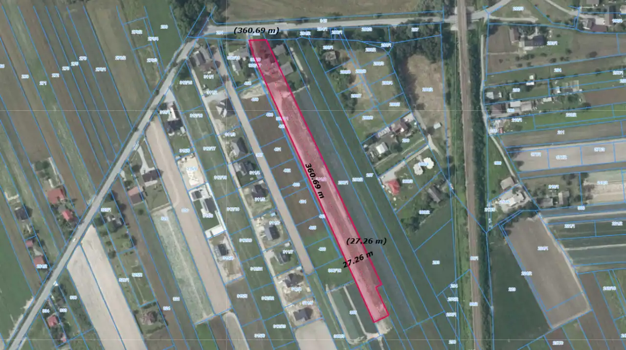 Działka o powierzchni 8352 m2 i wymiarach śr. 22x360 m. Działka płaska, niezadrzewiona.