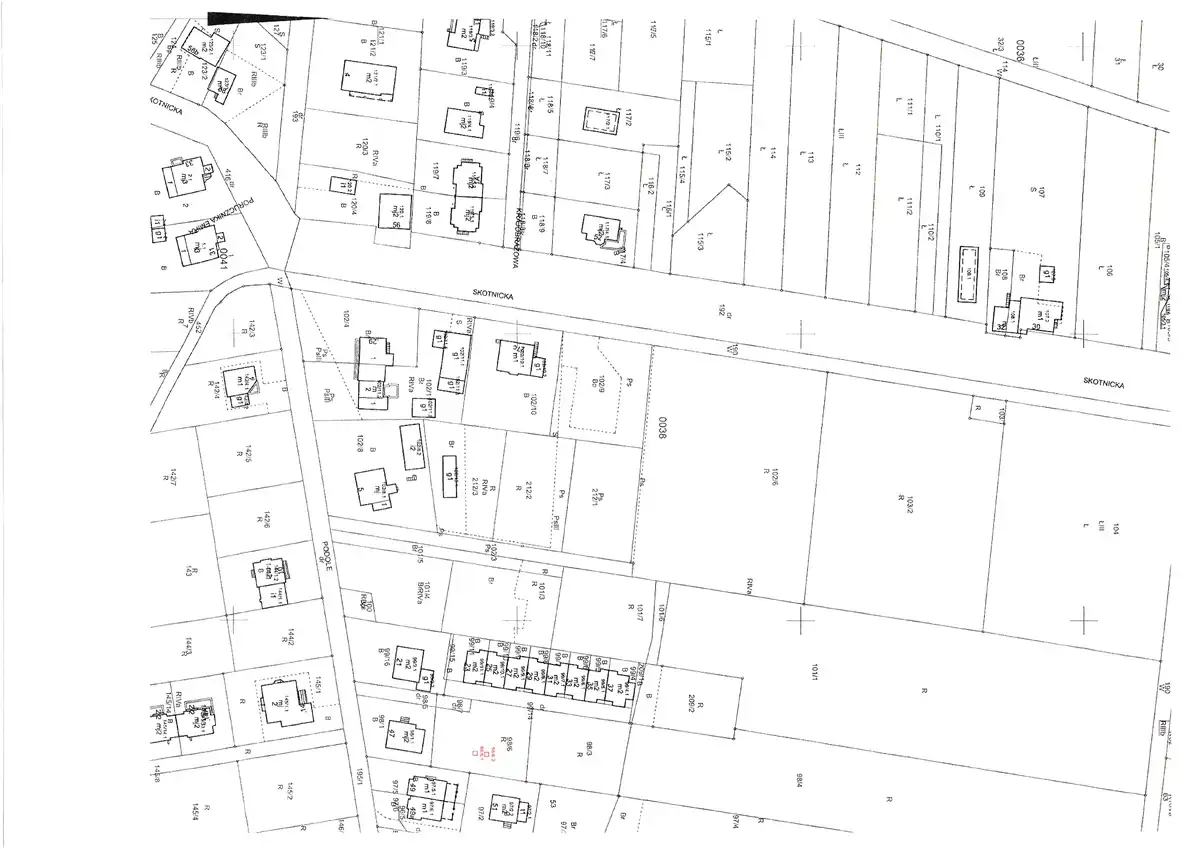 Status usługowa, w Skotnikach w okolicy ulicy Skotnickiej objęta obowiązującym MPZP jako tereny zabudowy usługowej, o podstawowym przeznaczeniu pod zabudowę budynkami usługowymi.
