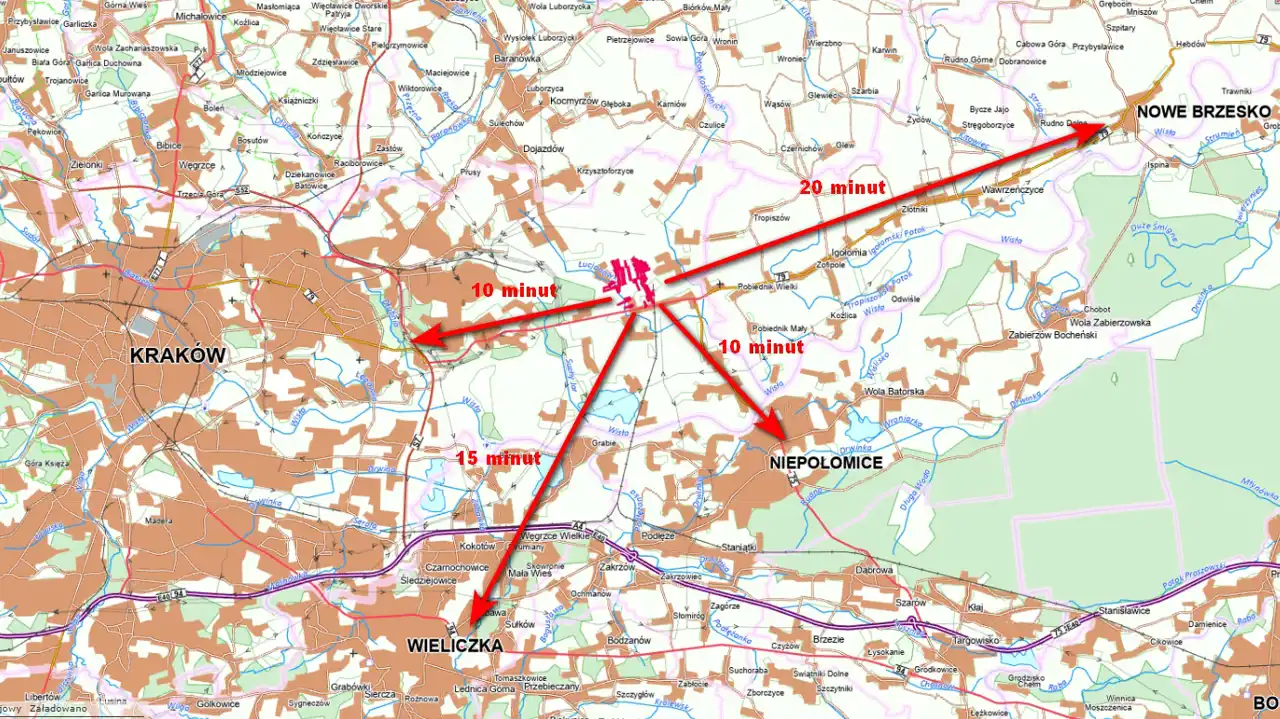 Nieruchomość bez bezpośredniego dostępu do drogi publicznej. Dostęp można uzyskać poprzez działkę sąsiadującą (działka dostępna do zakupu w innej ofercie naszego biura)