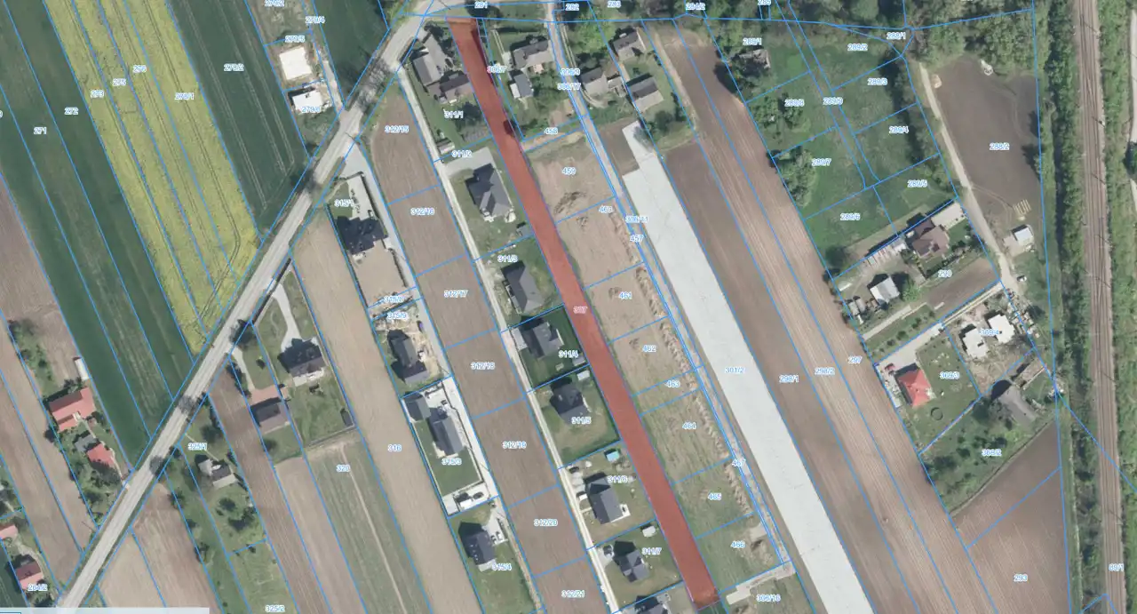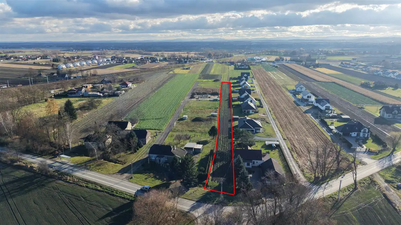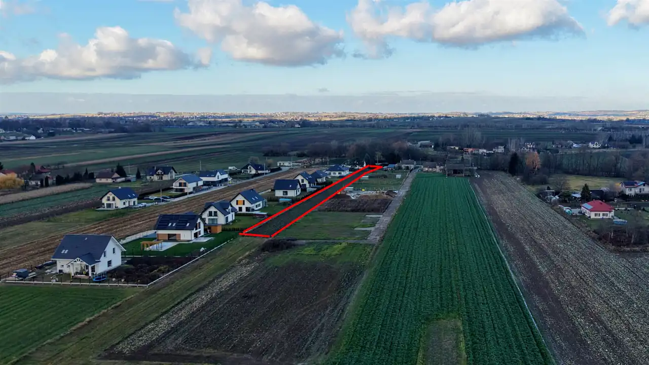 Dojazd asfaltowy. Działka położona w sąsiedztwie domów jednorodzinnych