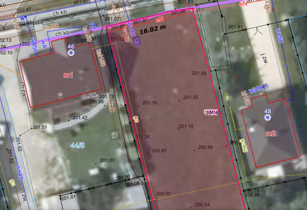 budynków w odległości minimum 2 m od granicy działki sąsiedniej