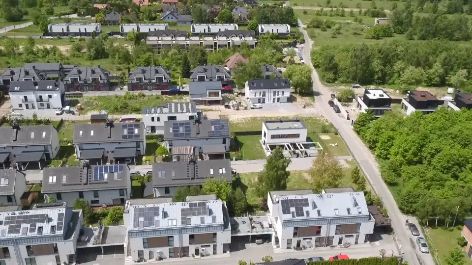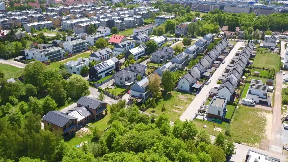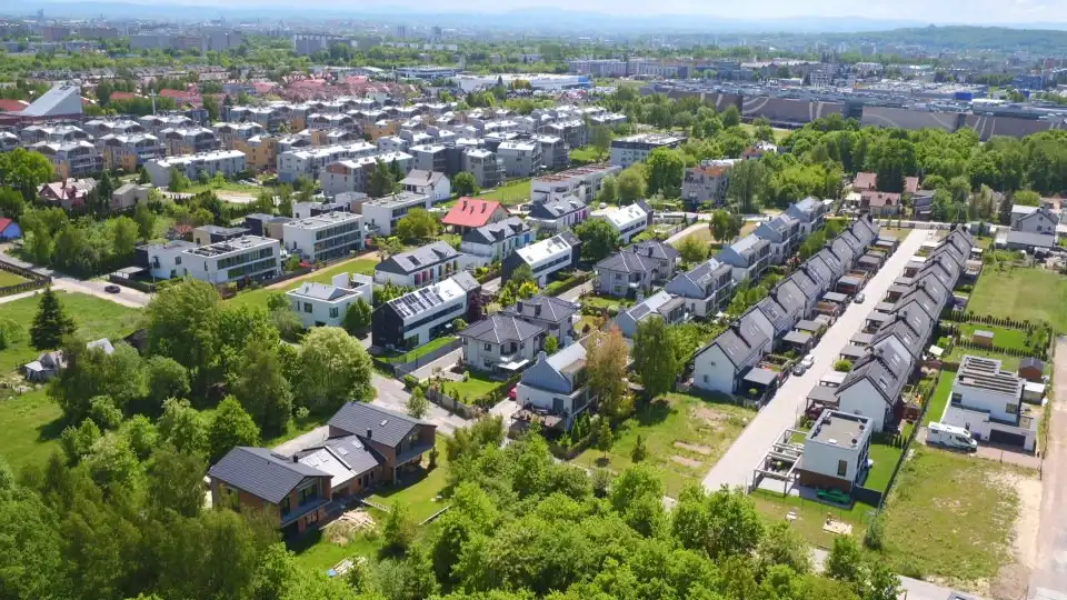 Okolica zabudowana nowymi blokami i domami jednorodzinnymi.