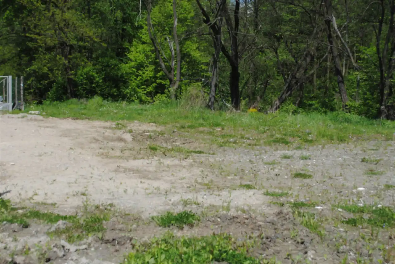 Zadrzewiony, lekko falisty teren, idealny na ogród, rekreację lub jako bufor zieleni.