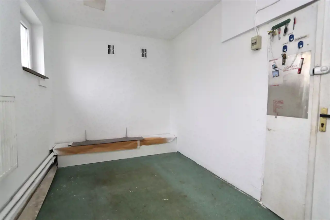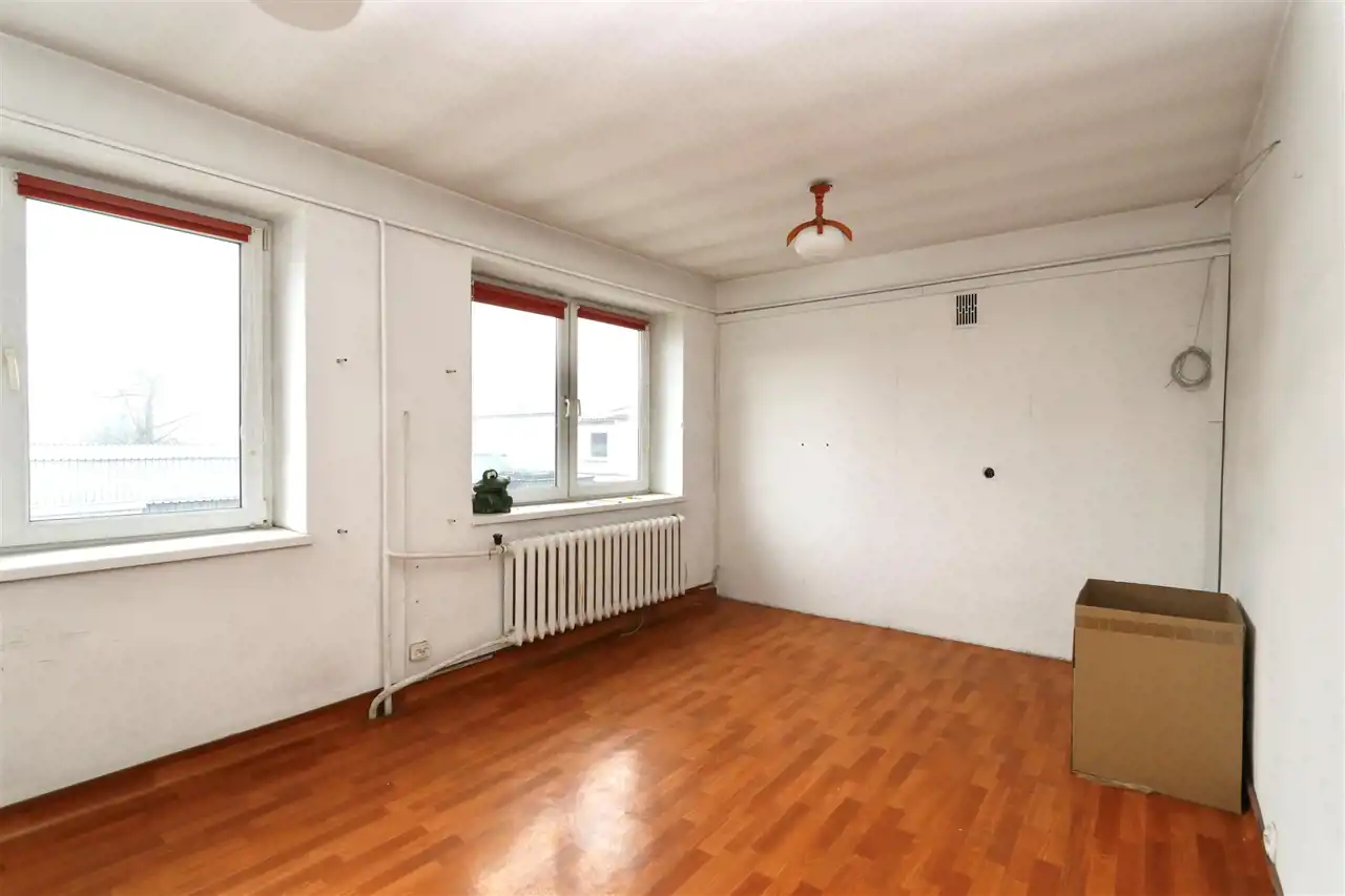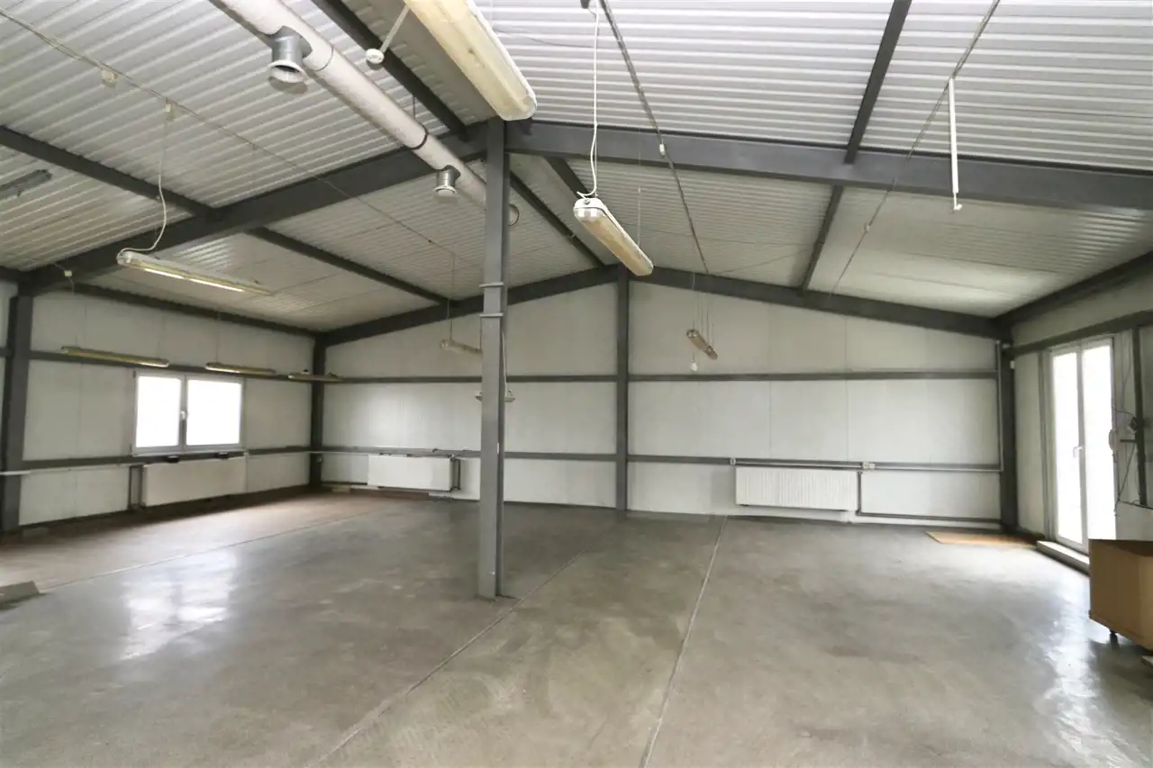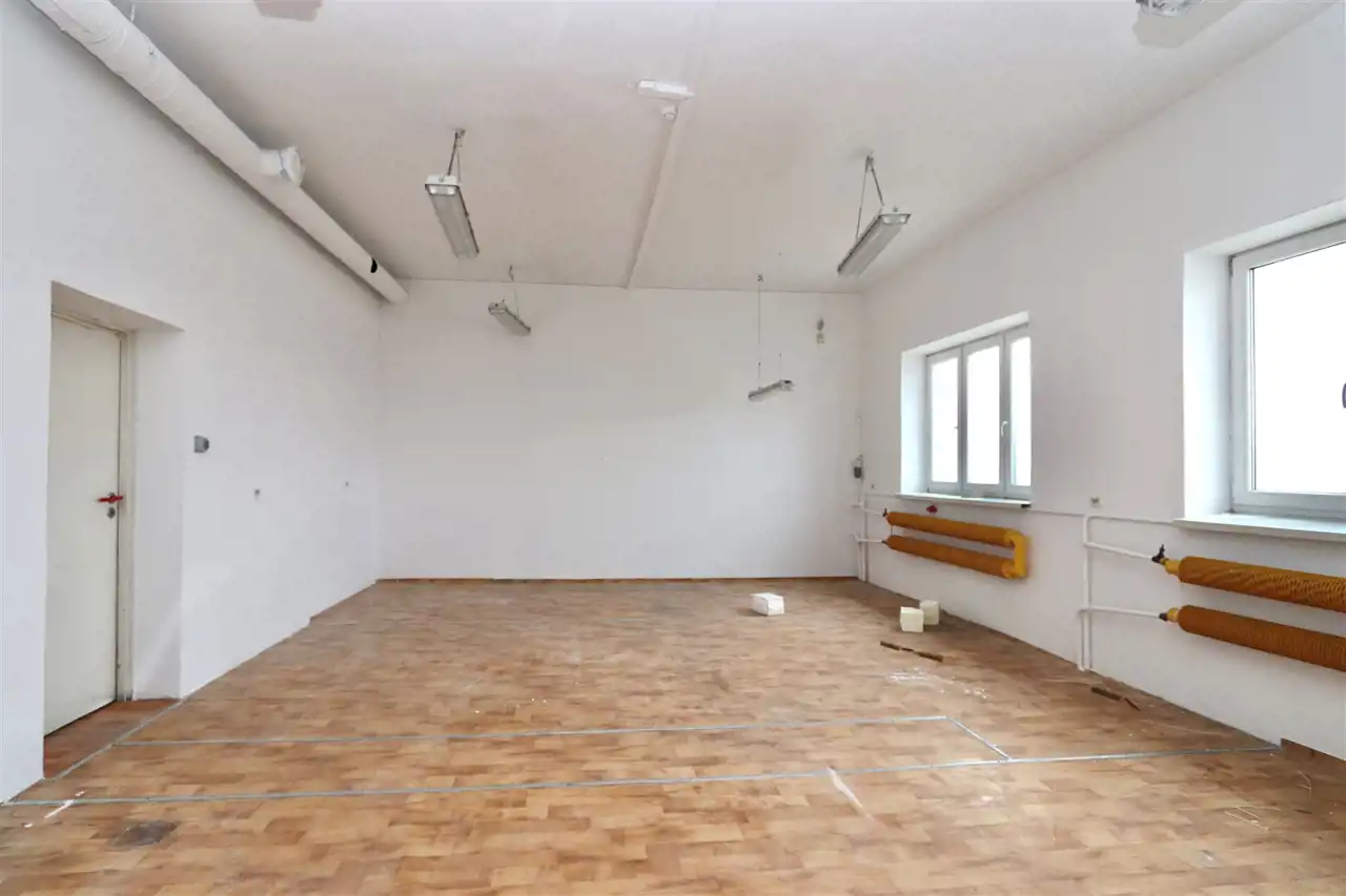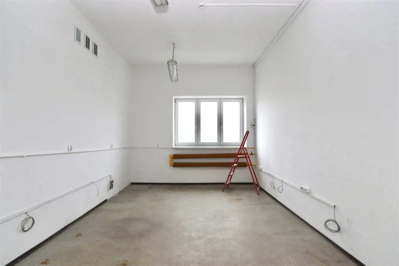 Budynek dwukondygnacyjny, ogrzewany, wybudowany częściowo w technologii murowanej oraz częściowo z płyty warstwowej. Stolarka okienna PCV z kratami w oknach na parterze.