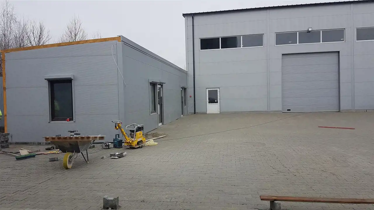 - powierzchnia biurowa, socjalna, sanitarna ok. 110m2 (ogrzewanie/ chłodzenie- klimatyzatory),
