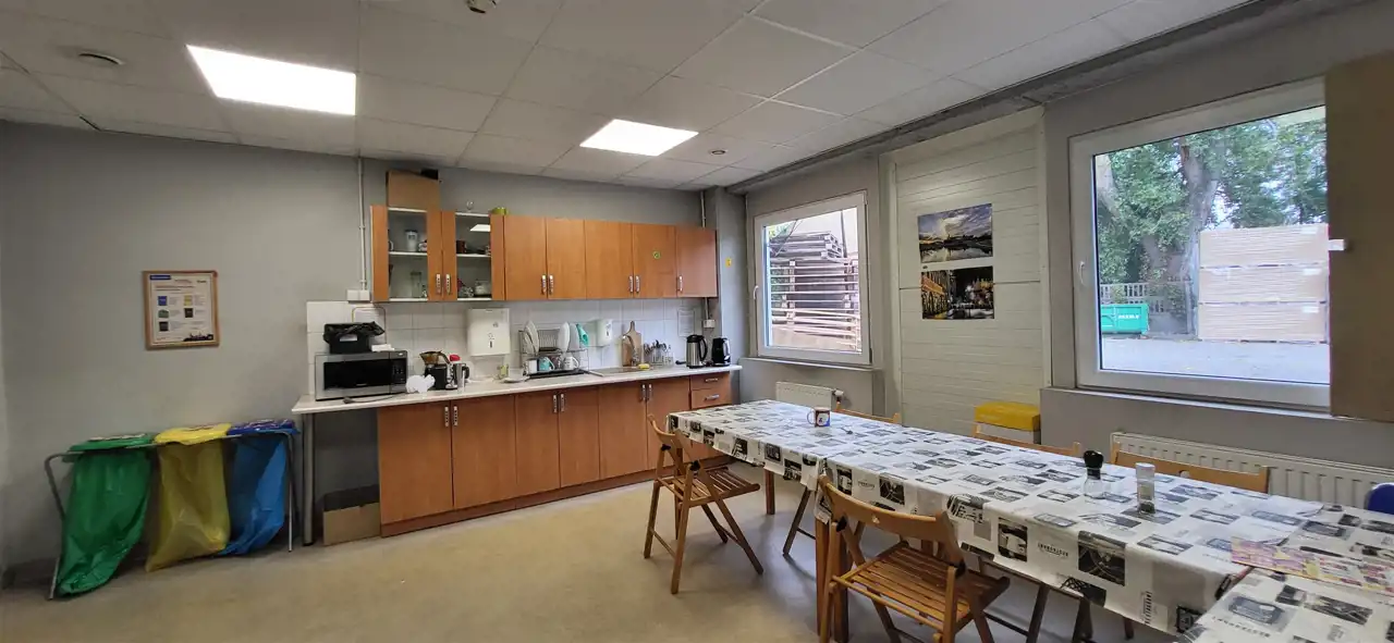 Do hali przynależy powierzchnia biurowo - socjalna: pomieszczenie gospodarcze (kuchnia), szatnia damska i męska, toalety. Powierzchnia wykończona i klimatyzowana.